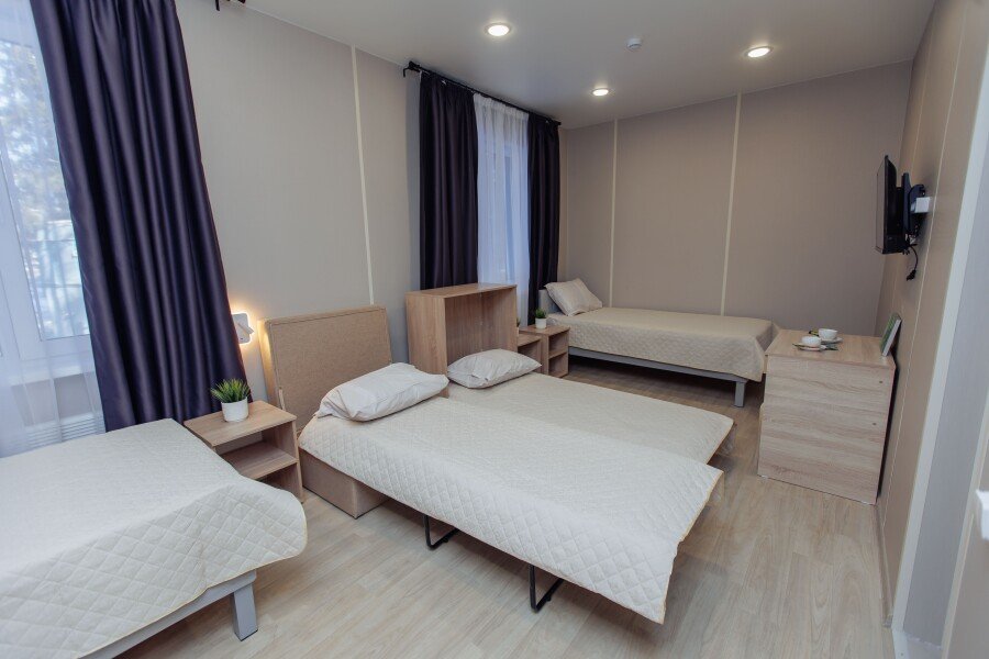 Стандартный двухместный номер — это уютное пространство, где каждая деталь создана для вашего комфорта. Светлый интерьер располагает к отдыху, а продуманная обстановка делает пребывание максимально удобным.