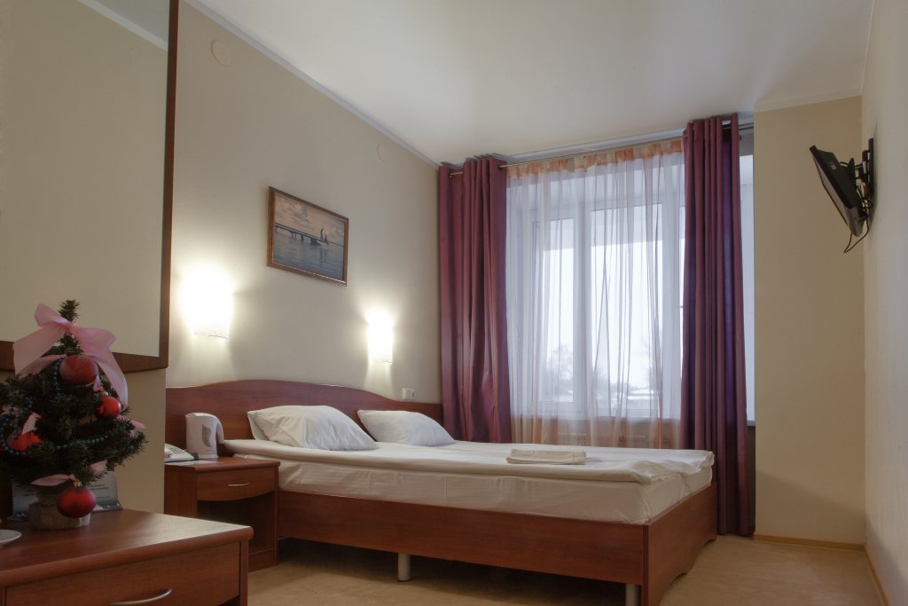 •удобные кровати; •прикроватные тумбочки •рабочее место •шкаф; •ЖК телевизор; •телефон; •чайник; •ванная комната с набором полотенец и туалетных принадлежностей; •фен (в ванной комнате)