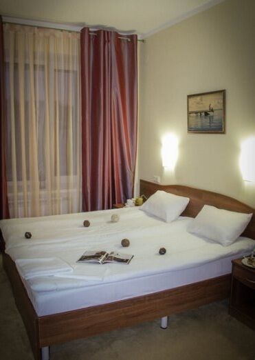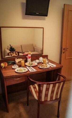 •удобные кровати; •прикроватные тумбочки •рабочее место •диван •шкаф; •ЖК телевизор; •телефон; •чайник; •ванная комната с набором полотенец и туалетных принадлежностей; •фен (в ванной комнате)