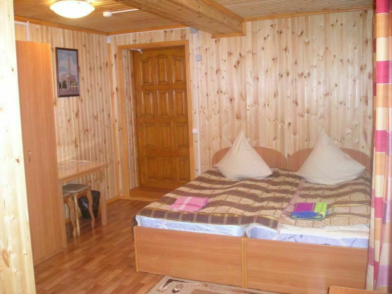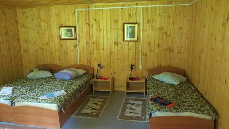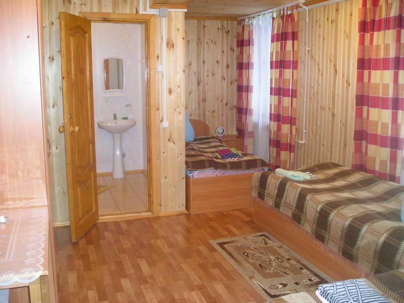 Коттедж 2-х уровневый — с расчетом на 8 спальных мест, плюс возможность дополнительных мест — по согласованию с администратором! (на первом этаже: 2-а дивана — 4 спальных места, туалет, душевая кабина, телевизор, чайник, холодильник, набор посуды; на втором этаже: две двухместные комнаты, туалет, раковина.