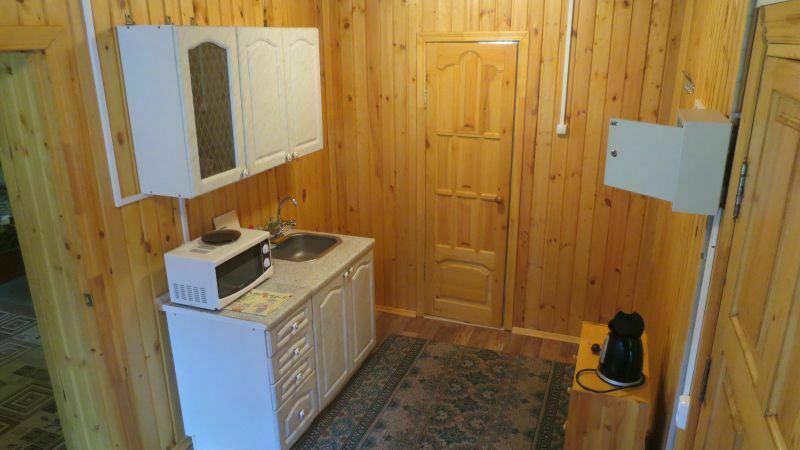 Коттедж 3-4 спальных места (кухня с набором посуды, микроволновой печью, чайником, холодильником; туалет, душ, раковина,телевизор, летняя беседка)