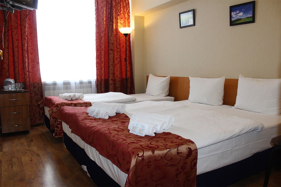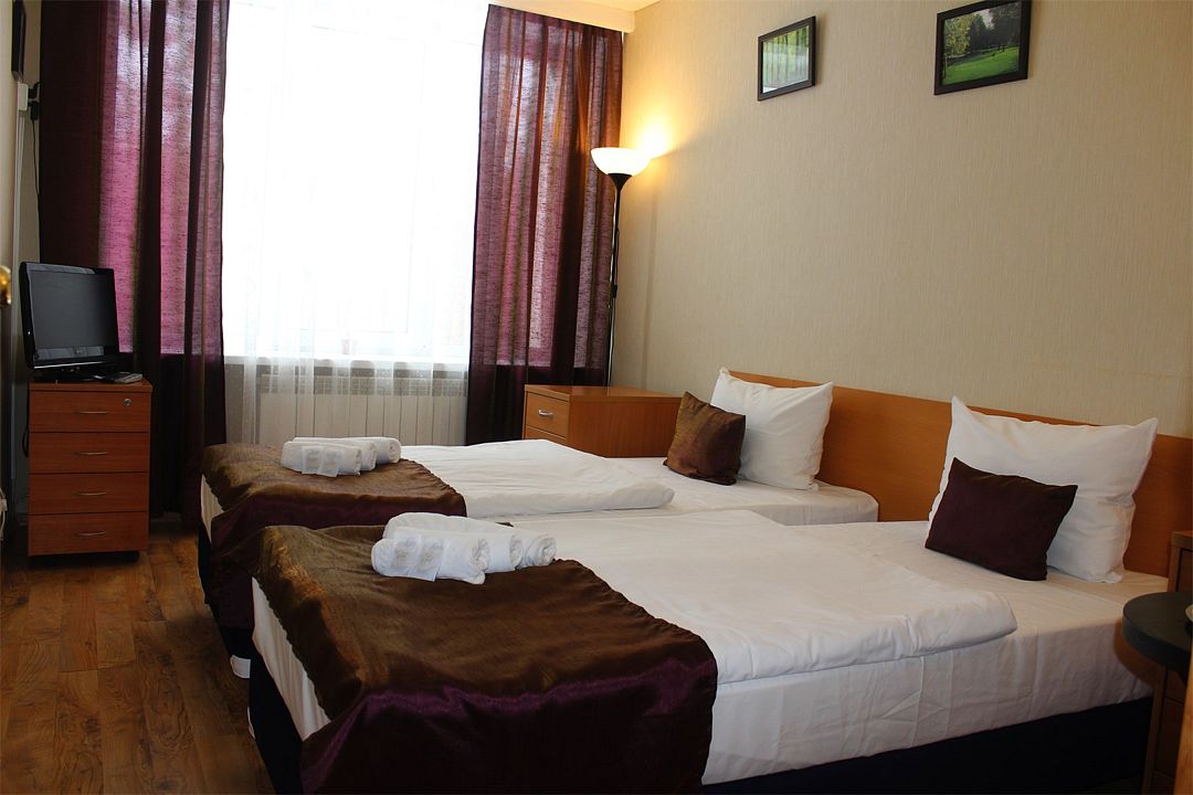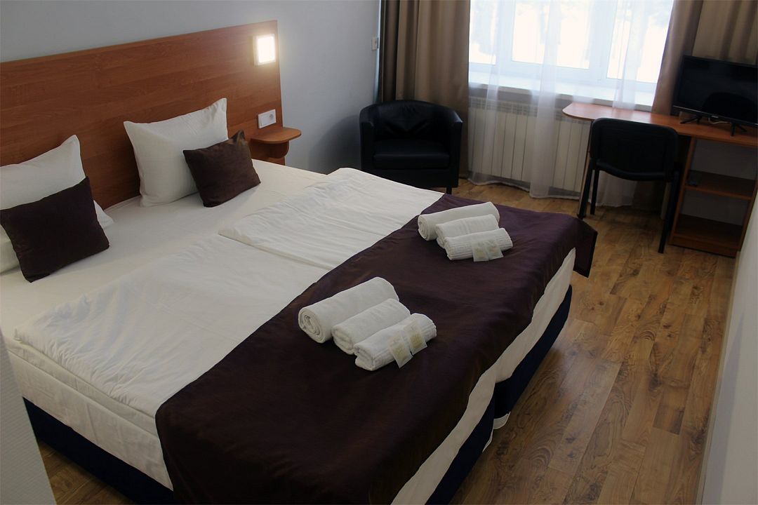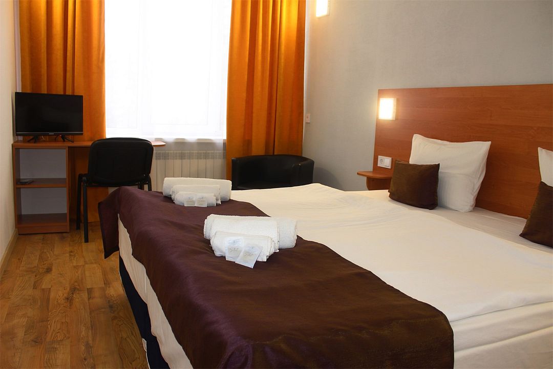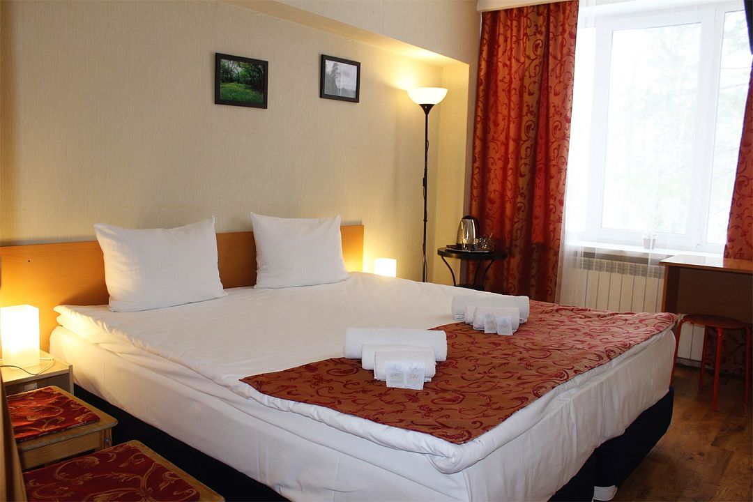 Однокомнатный номер со своим с/у. В номере две односпальные кровати или одна двуспальная "King size". На дополнительное место предоставляется раскладушка.
