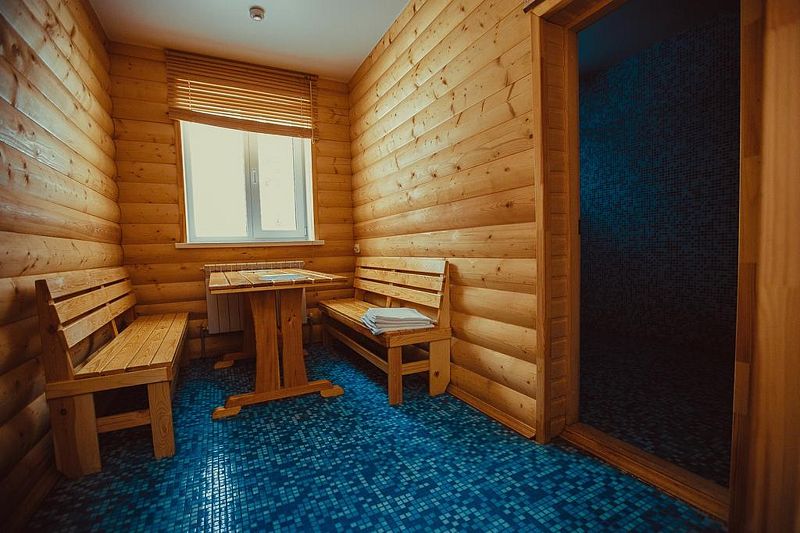 Комплекс включает банкетный зал вместимостью до 20 человек и финскую сауну с комнатой отдыха, вмещающую до 6 человек.