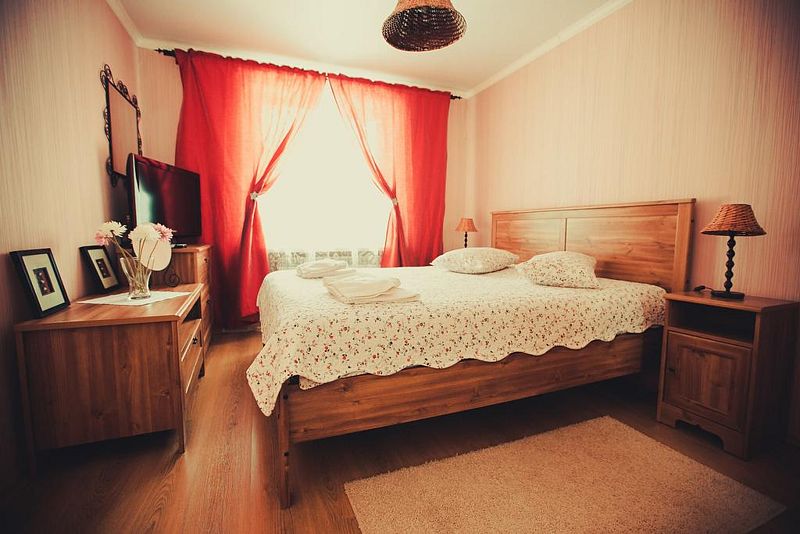 - две спальные комнаты с двуспальными кроватями, спальным гарнитуром и телевизором;