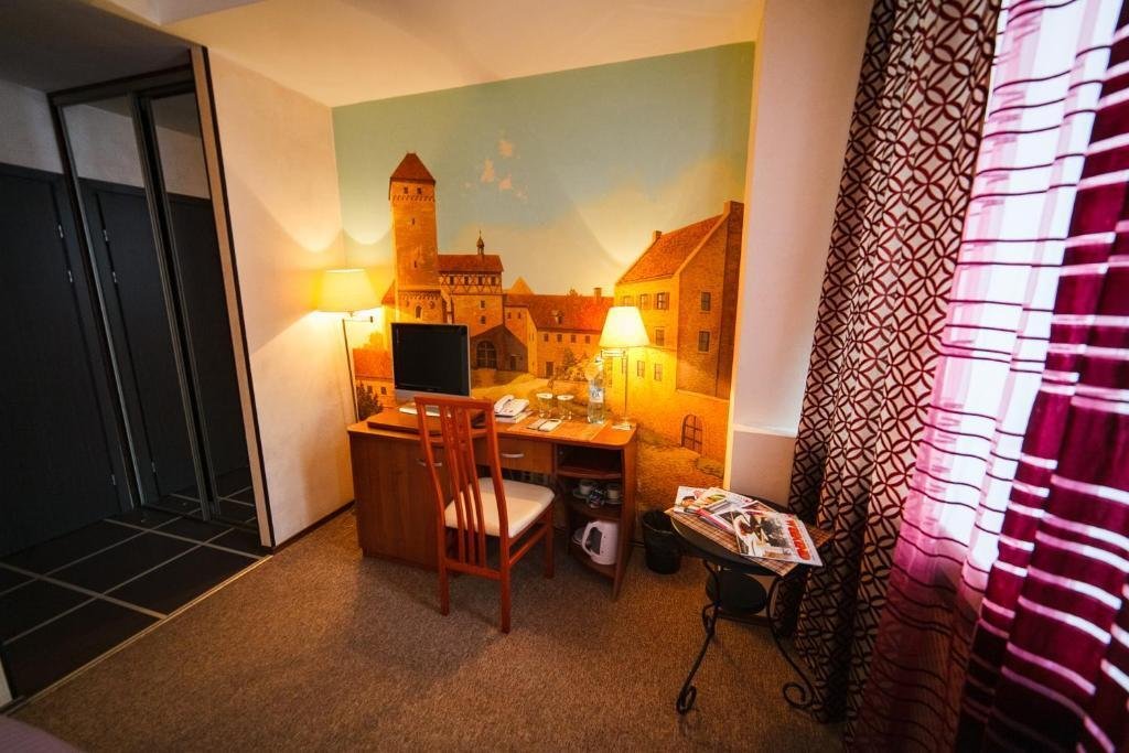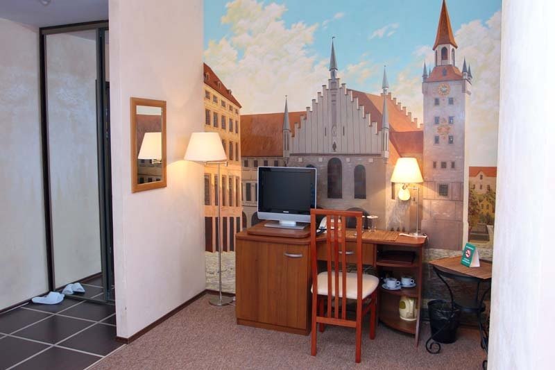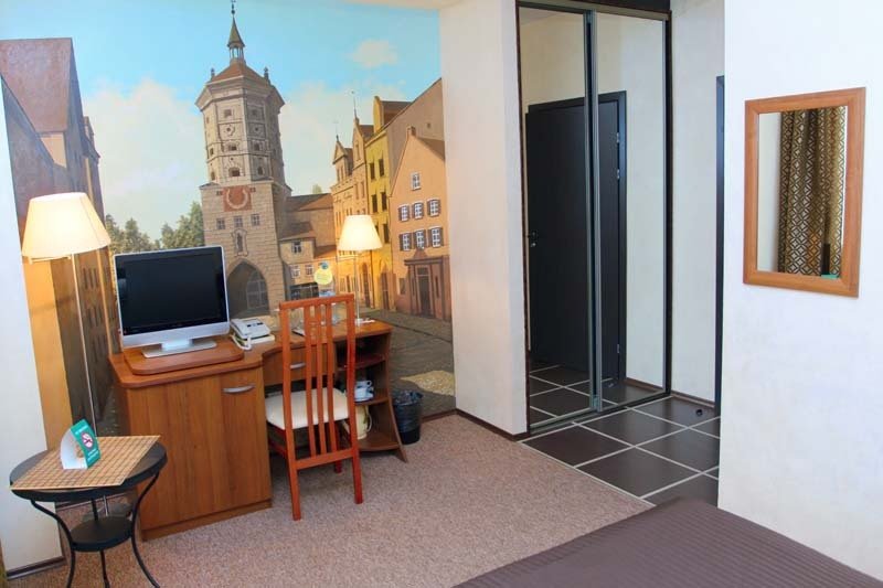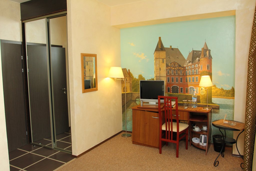 В номере вы найдёте телевизор. Оснащение зависит от выбранной категории номера.