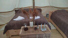 Двухместный шатёр Белл Тент с раздельными кроватями из натуральных дышащих материалов, хорошо удерживающих тепло.