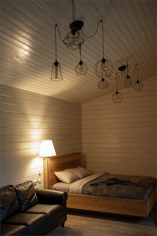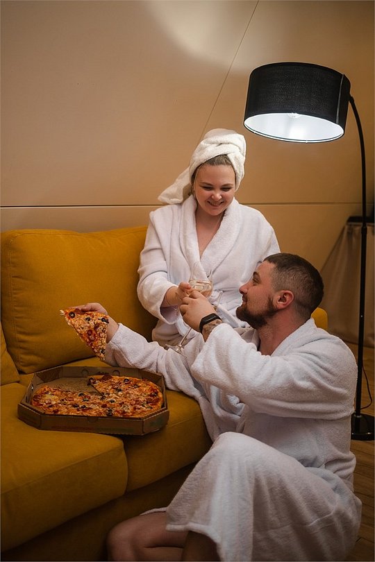 телевизор, Wi-Fi, кондиционер, фен, плита для приготовления пищи, микроволновая печь, обогреватель, душевая кабина, банные полотенца, гигиенические средства, двуспальная кровать, душ, вид во двор, туалет, панорамные окна, мини-холодильник, двуспальный раскладной диван-кровать, мыло, можно с питомцамиВ домике