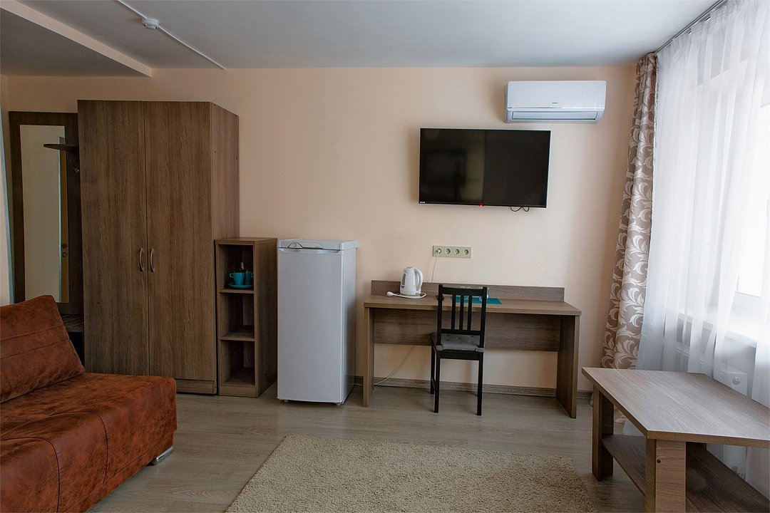 Номера категории «Стандарт мини» расположены в спальном корпусе №1 на первом, втором, третьем, четвертом и пятом этажах. Смена белья один раз в пять дней, влажная уборка в номере один раз в два дня, вынос мусора ежедневно.