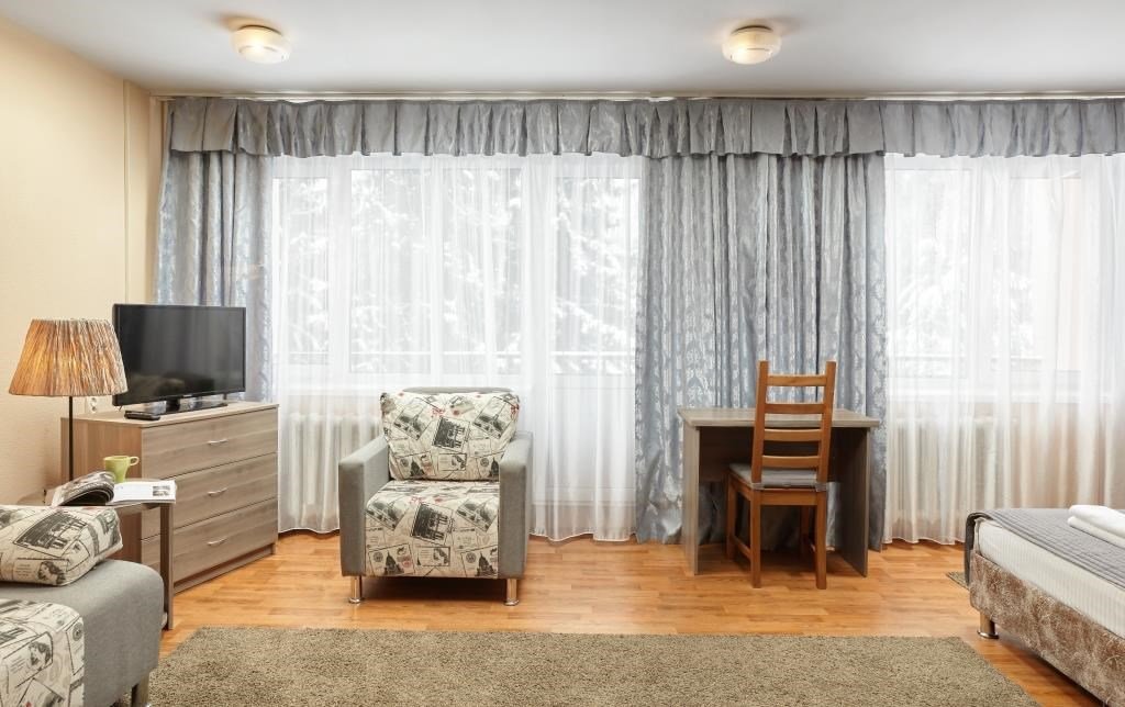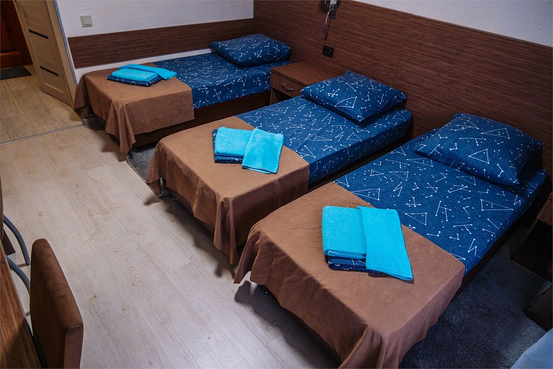 Номера категории «Стандарт 3-местный однокомнатный» расположены в спальном корпусе №1 на втором, третьем и четвертом этажах. Смена белья один раз в пять дней, влажная уборка в номере один раз в два дня, вынос мусора ежедневно.