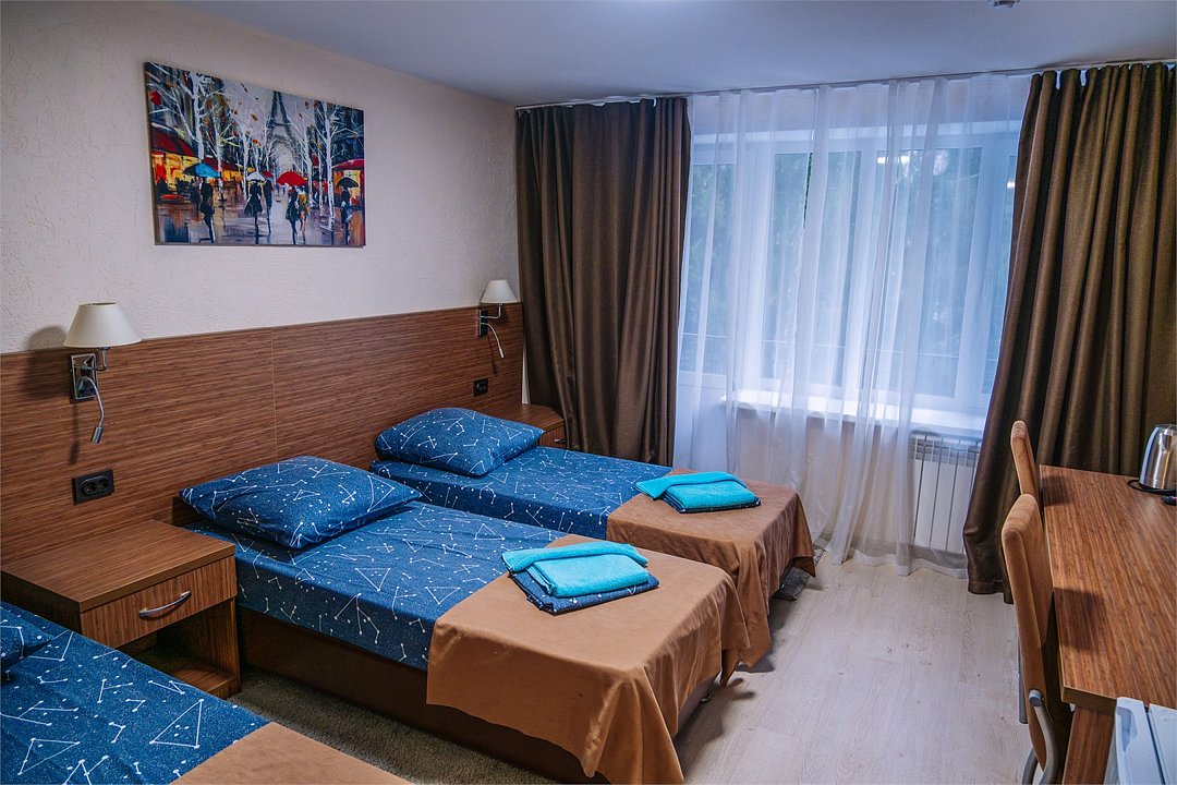 Номера категории «Стандарт 3-местный» расположены в спальном корпусе №1 на первом, четвертом и пятом этажах. Смена белья один раз в пять дней, влажная уборка в номере один раз в два дня, вынос мусора ежедневно.