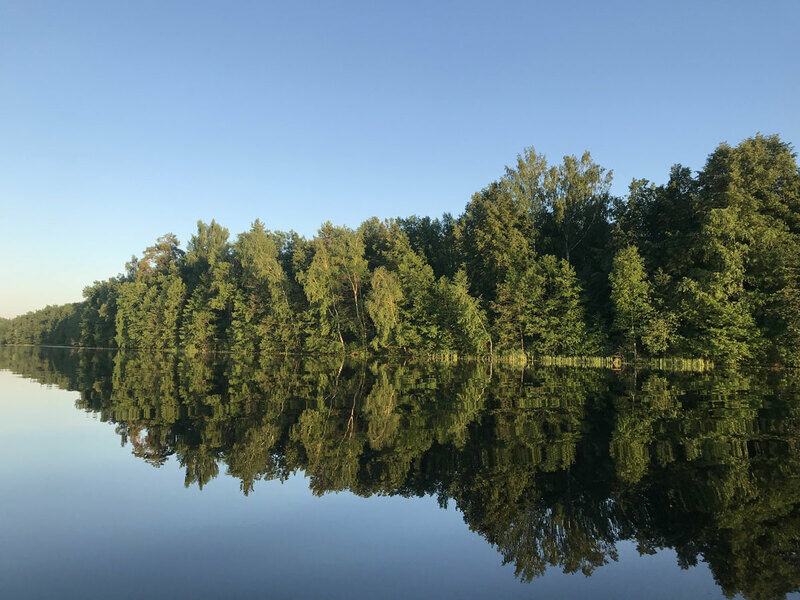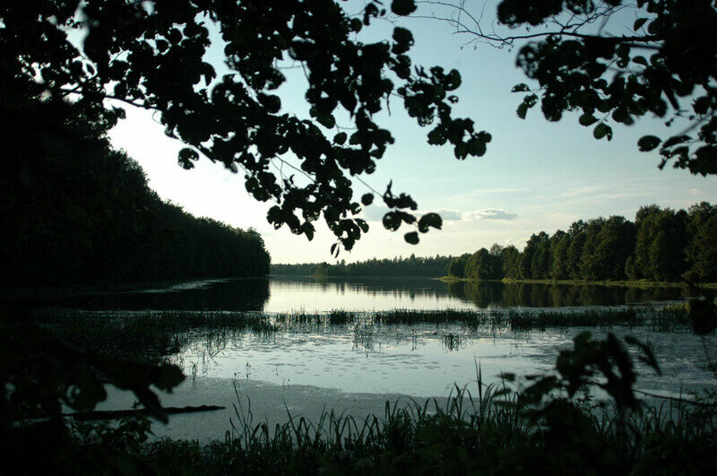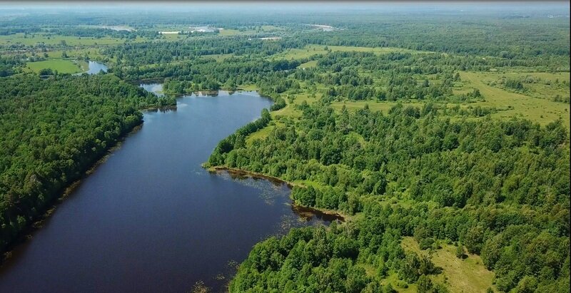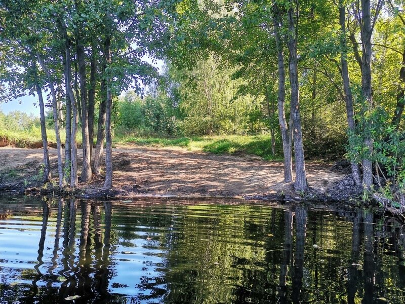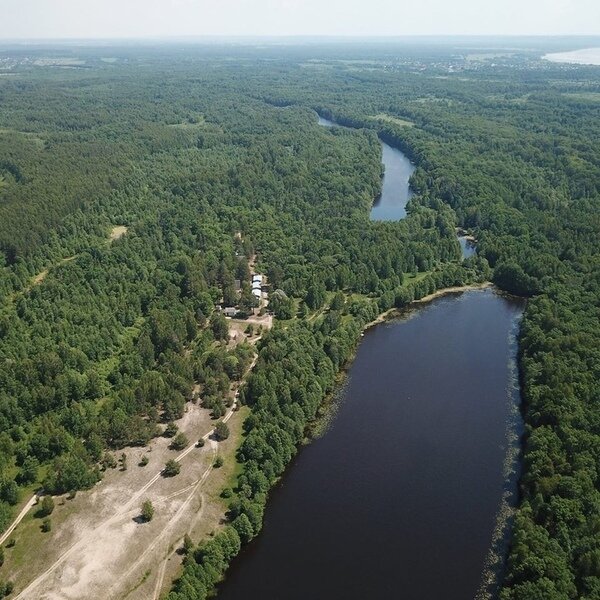 Большое красивое лесное озеро в 50 метрах. Красивое безлюдное лесное озеро в 100 метрах.