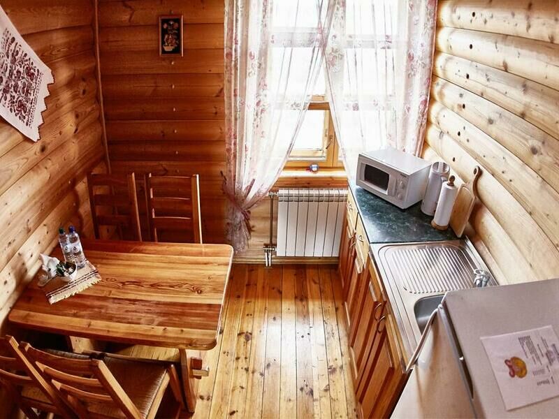 Уютные однокомнатные номера расположены в двухэтажных деревянных теремах.