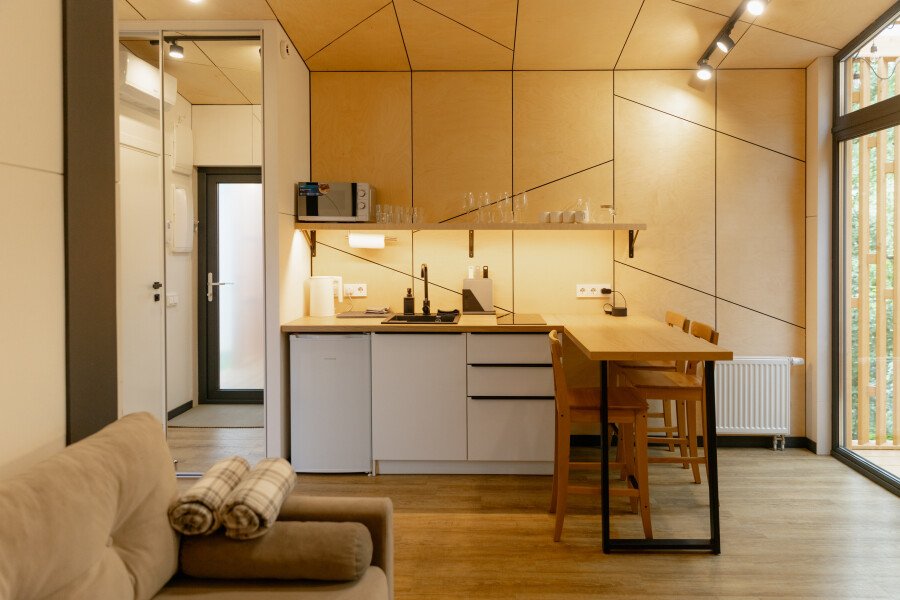 Сдаются в посуточную аренду новые модульные дома в глэмпинге DK LAND в черте города, в Приокском районе, рядом с ЖК «Гагаринские высоты».