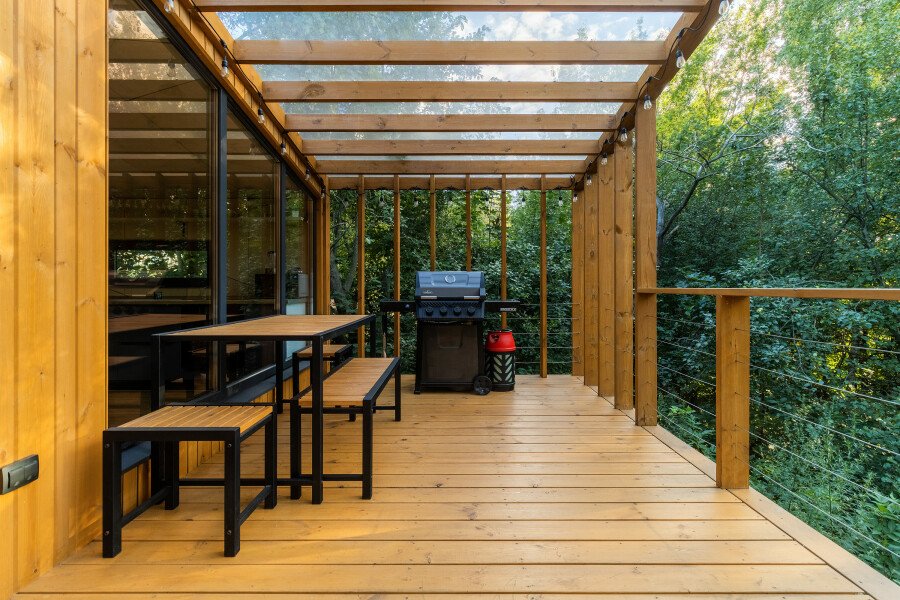 В глэмпинге «DK LAND» созданы все условия для комфортного отдыха и кулинарных экспериментов. Гости, проживающие в больших домиках, могут пользоваться грилями, установленными на верандах, чтобы готовить любимые блюда на свежем воздухе.