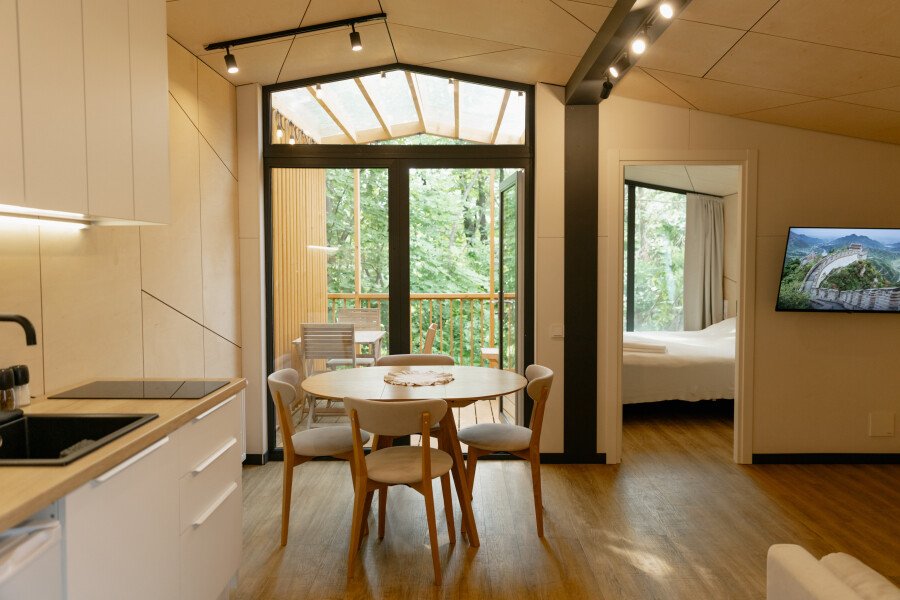 Комплекс предлагает двенадцать экологичных домиков, оснащенных всем необходимым для комфортного отдыха. Здесь найдут уют как пары, так и семьи или корпоративные группы. В каждом домике — удобные кровати, современные кухни, душевые, кондиционеры, телевизоры и просторные террасы. При строительстве использовались только натуральные материалы, а сотрудничество с местными поставщиками поддерживает экономику региона.