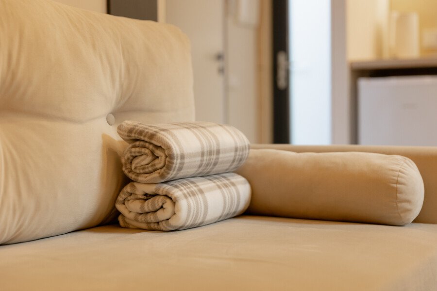 Одна двуспальная кровать, одна диван-кроватьВ глэмпинге