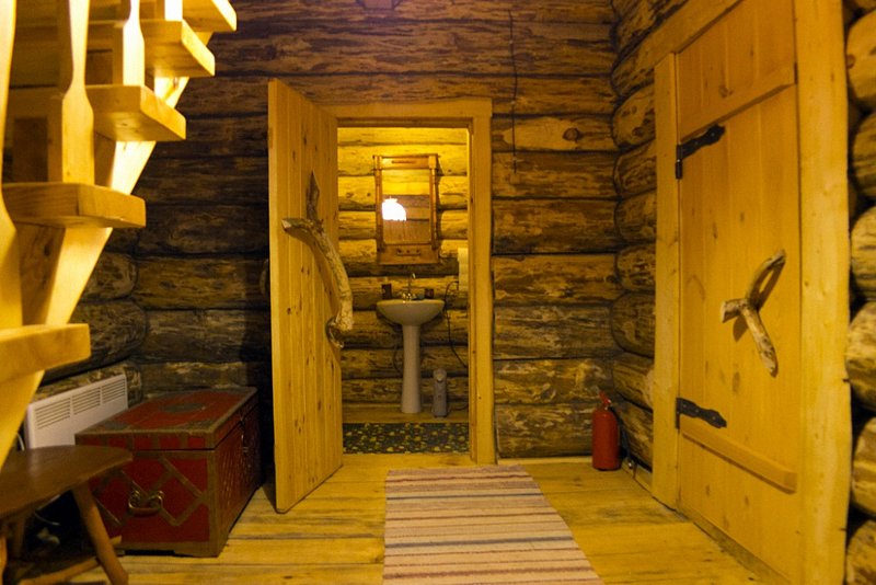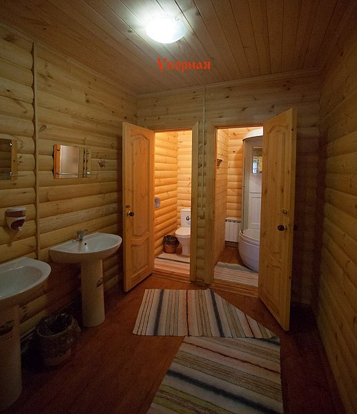 «На золотом крыльце сидели - царь, царица, король, молодица, сапожник, портной, а ты, кто такой?»: — приходит на ум детская считалочка. Двухэтажная сказочная изба, лучший вариант для семейного отдыха. Теплый дом с печкой, удобные кровати, запах дерева — создают атмосферу полной гармонии. Рассчитан домик на 4 человек. Прихожая, натуральная деревянная мебель, кровати из сосны, добротный стол, антикварная мебель. Сочетание русского стиля и современного комфорта не оставят Вас равнодушными. Санузел. В помещении расположена раковина, унитаз и душевая кабина.