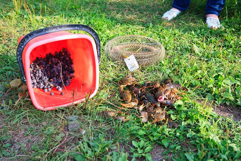 Из ягод здесь много луговой клубники, ежевики, дикая лесная малина, черника и голубика. Также недалеко от базы есть орешник.