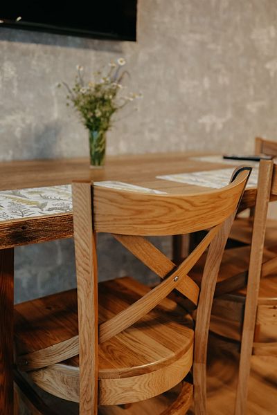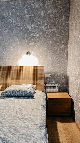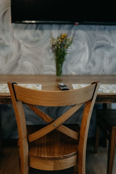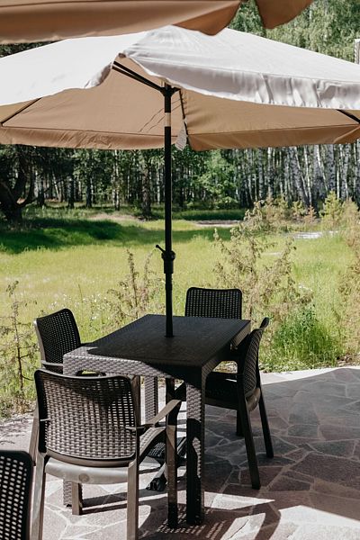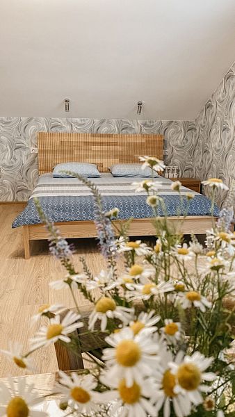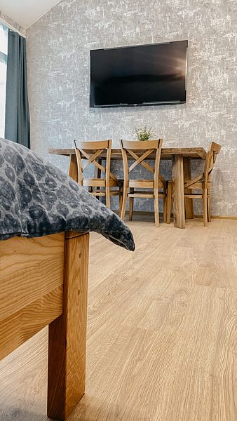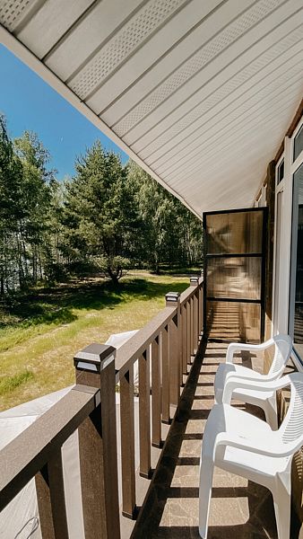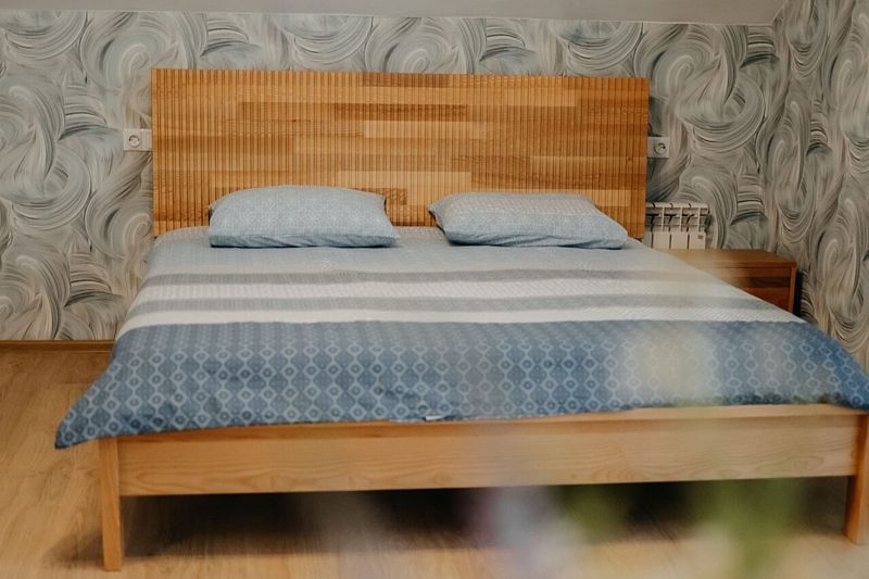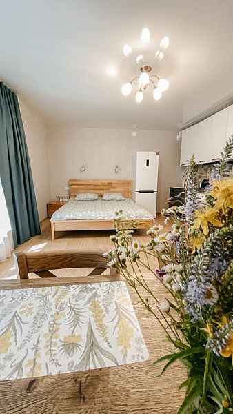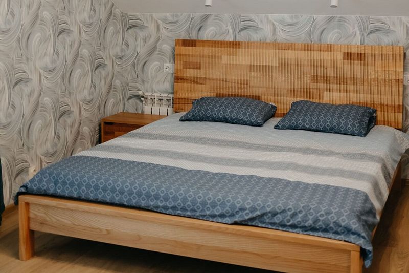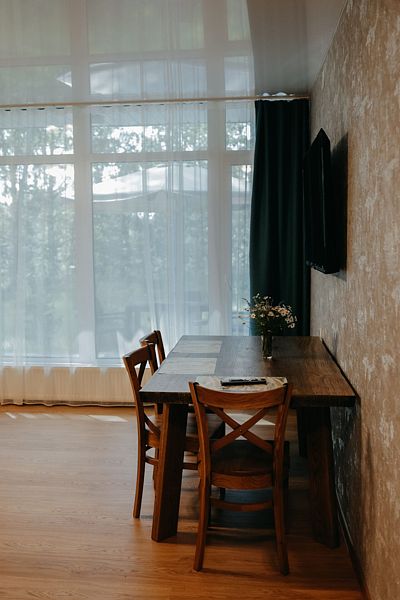 Натуральная мебель из массива дуба (кровать 180х200, стол, 3 стула, тумбочка), балкон или терраса с уличной мебелью, питьевая вода прямо из-под крана.