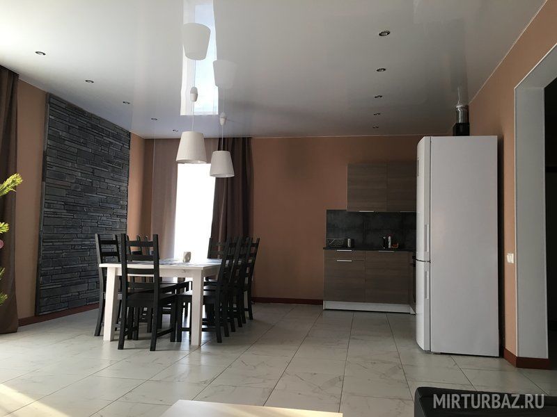Семейный отдыхДостоинстваПрекрасное место для отдыха. Да, далековато от Нижнего Новгорода, но, по мне, лучше ехать на нормальной скорости 2 часа, чем толкаться эти же 2 часа по пробкам. Дорога, в целом, хорошая: без проблем ехали на двух машинах (внедорожник и седан), ни у кого проблем не возникло, бездорожья не было. Спокойно в один из дней съездили на экскурсию в НН. Территория ухоженная, газон подстрижен, в лесочке на территории растут грибы, есть детская площадка, велосипеды, самокат, мячи для волейбола и волейбольная площадка, есть место, где можно постирать вещи (гель для стирки тоже есть). О рыбалке лучше договариваться заранее. Есть две бани с купелями (мы не пользовались - была жара жуткая). По самому домику: идеальное место для компании из 8 человек (две семьи с детьми) - отдельные комнаты, с отдельными санузлами, то есть свое пространство у каждого, чтобы отдохнуть. Отличная планировка домика. Общая зона отдыха спланирована очень четко: кухня -гостиная, терраса, мангал. Отдельный респект, кто планировал кухню! Все от кастрюль до бокалов для шампанского укомплектовано. Холодильник/плита - все новое. До пляжа минут 7 пешком медленным шагом. Пляж дикий, спуск - крутой, аккуратнее с детьми. Магазины хорошего уровня в 10 минутах на машине. В целом, удовольствие получили. Принимающая сторона очень адекватные люди, общаться очень комфортно, все вопросы были решены.