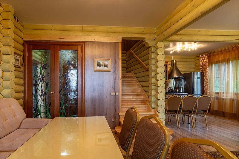 Просторные четырехкомнатные апартаменты с панорамными окнами вместимостью до 10 человек. Номер расположен на 2 этаже трехэтажного гостевого дома.