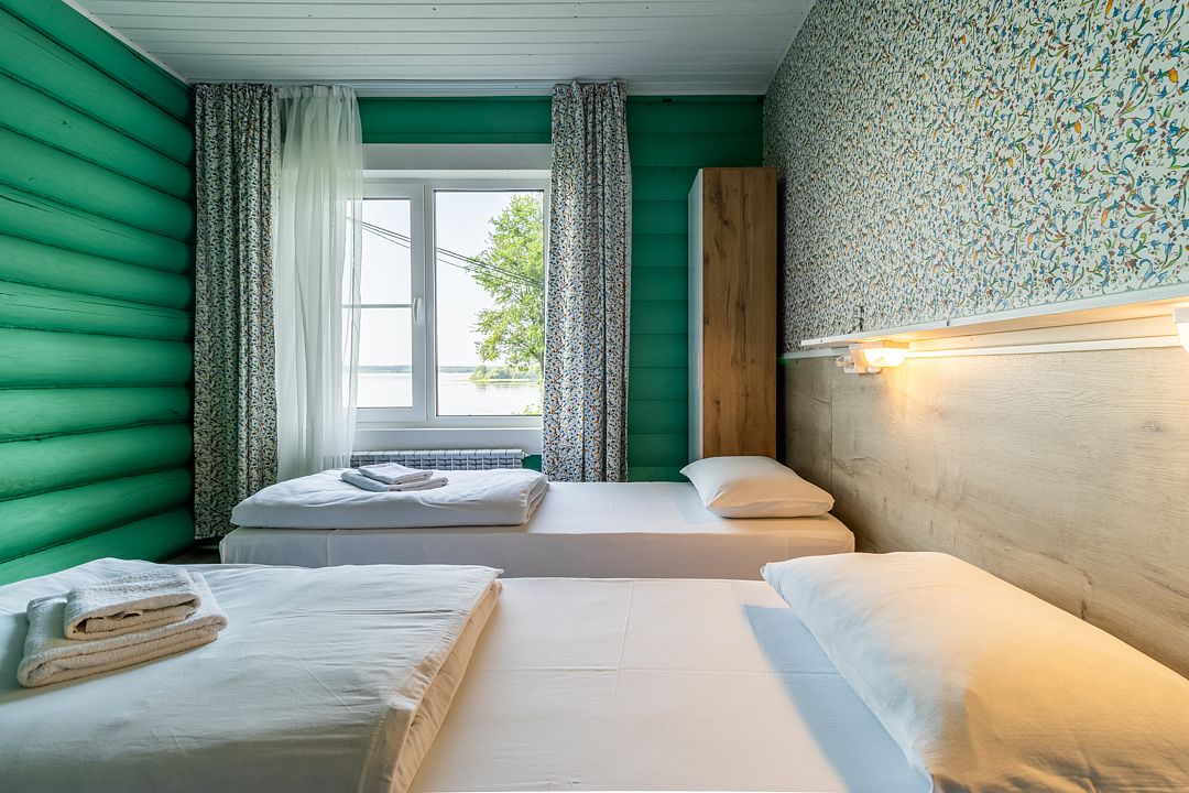 На территории базы представлены как уютные номера-студии с кухней и ванной для двух человек, так и просторные дома, вмещающие до 17 гостей. Все домики находятся в 70-120 метрах от воды и оснащены индивидуальными беседками. Для номеров предусмотрены отдельные зоны для барбекю, а также сауна на дровах. Пространство предлагает живописные виды и свежий воздух, создавая атмосферу покоя и уединения.