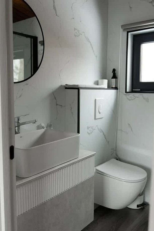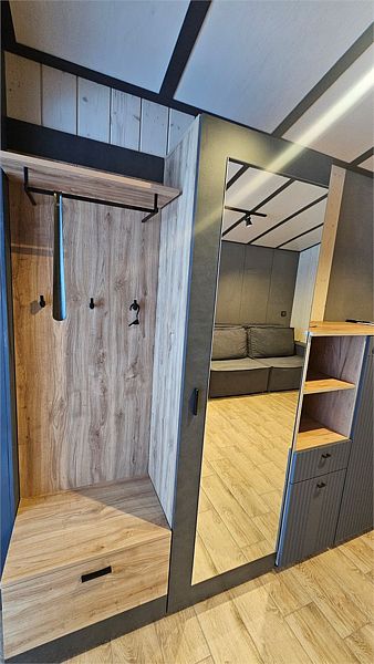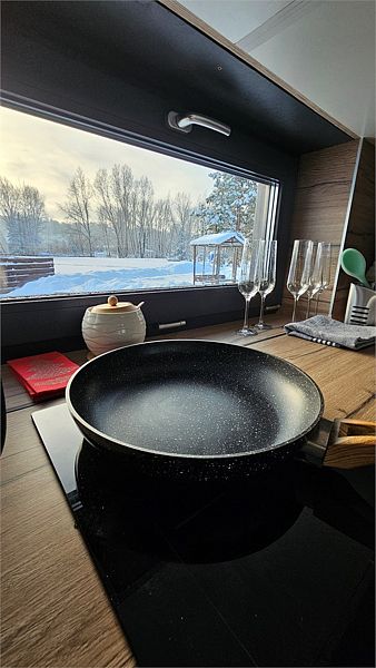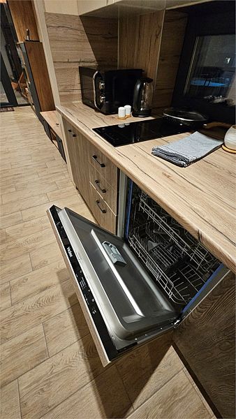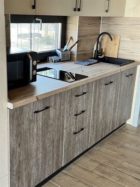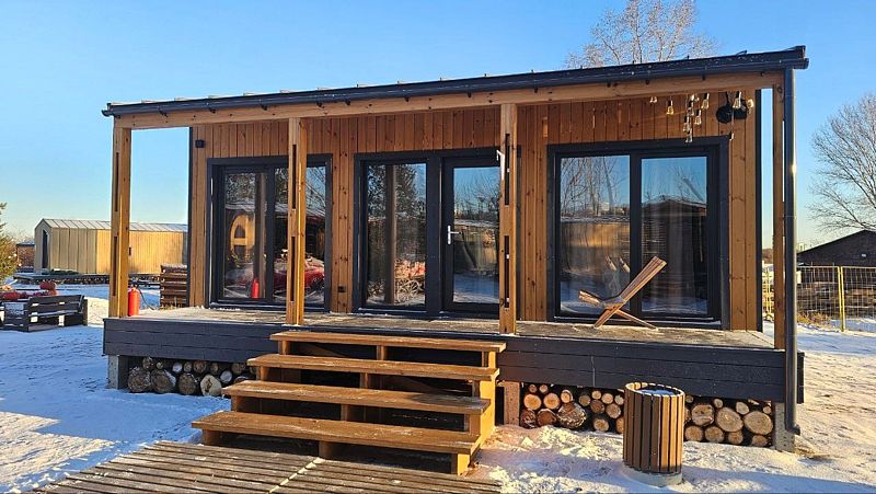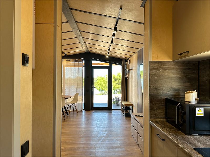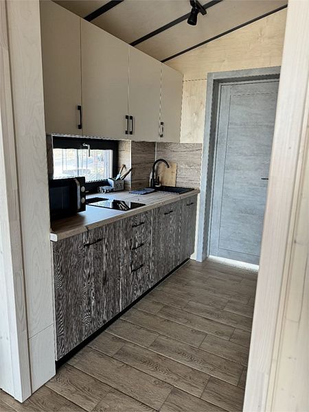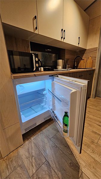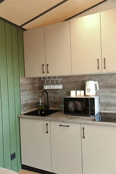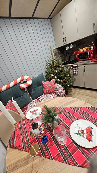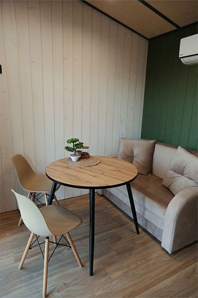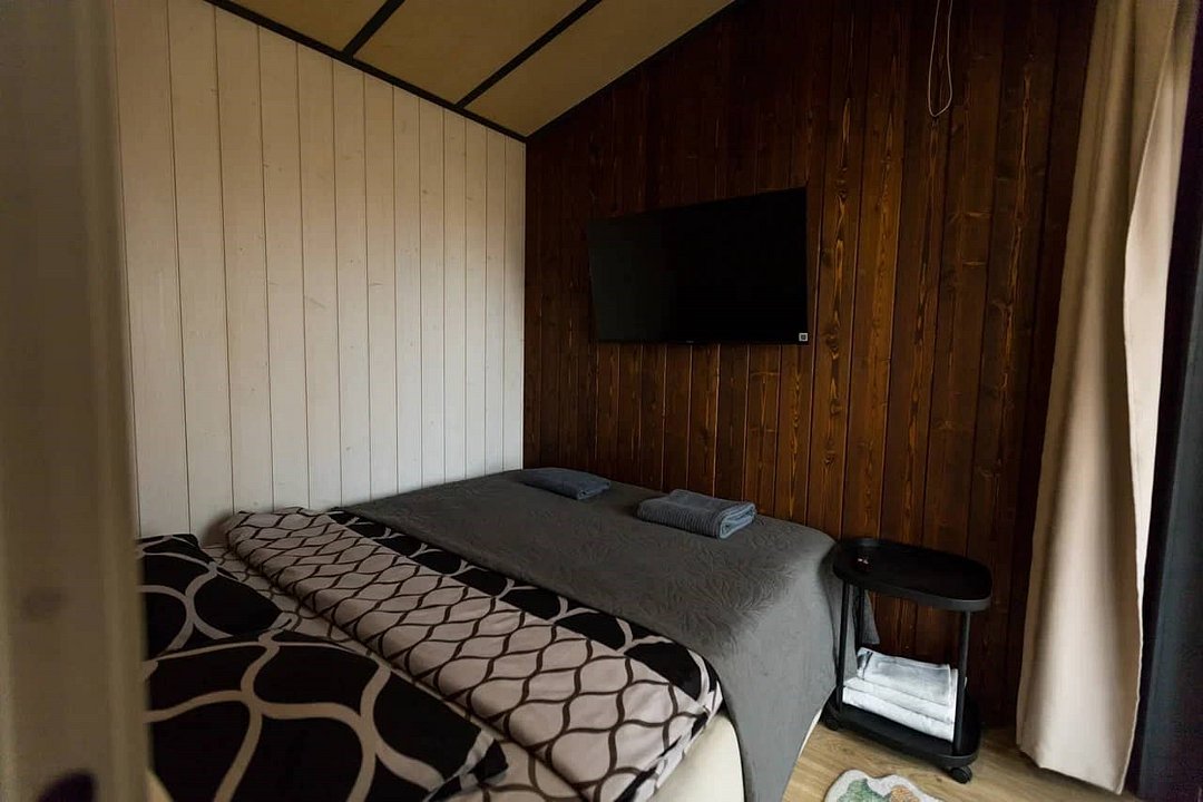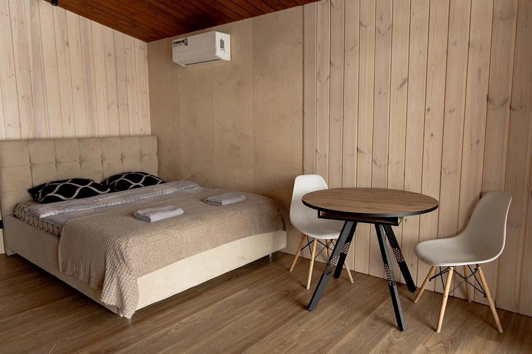 Дом MINI — компактный уют для семьи Уютный домик с продуманной планировкой — идеален для семейного отдыха. Дом MINI подходит для комфортного размещения до 4 человек. В доме: Изолированная спальня с двуспальной кроватью (160 см) Кухонная зона с раскладным диваном (спальное место 140 см) — удобно для двух детей Полноценная кухня: посудомоечная машина, плита, микроволновка, холодильник, посуда Санузел и душ внутри дома ❄️ Теплый пол, уют в любую погоду Уютная терраса и мангал — для ужинов на свежем воздухе Этот формат идеально подойдёт для пары с детьми или небольшой компании. Все условия для отдыха с комфортом — как дома, но ближе к природе.Услуги и удобства