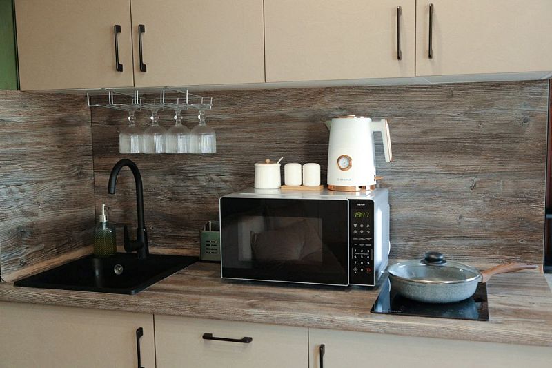 Для удобства гостей: оборудованная кухня — готовьте любимые блюда с комфортом; ванная комната с душем; лаунж зона для встречи гостей или романтического ужина; Wi-Fi и онлайн кинотеатр.