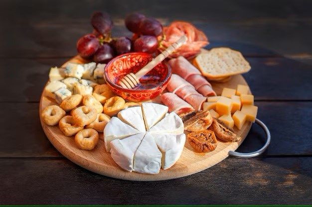 В набор входит: 2 вида изысканных сыров, чтобы насладиться гармонией вкусов. 2 вида пикантных колбасок, добавляющих нотку страсти. Хрустящие сухарики, идеально дополняющие закуски. Сочные виноградные гроздья и орехи, чтобы добавить сладости вашему вечеру.