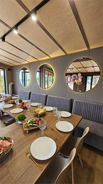 На территории глэмпинга оборудована зона барбекю для приготовления блюд на свежем воздухе. Также есть уютное кафе, в котором можно провести мероприятие.