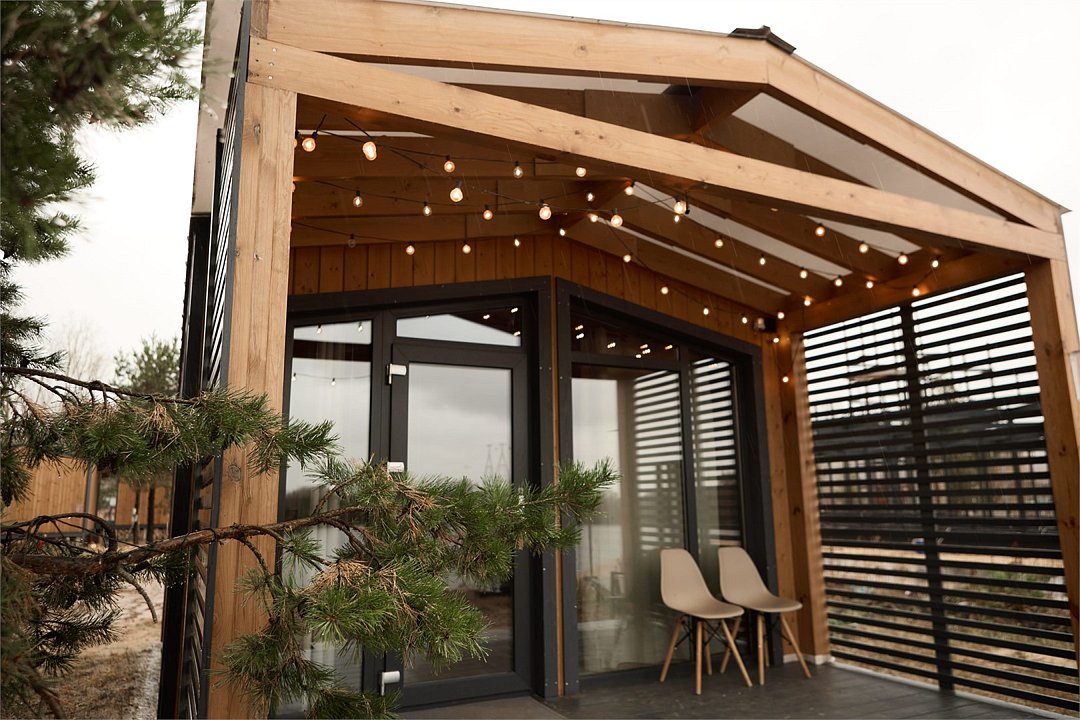 Современный дизайн, панорамные окна, эргономичная мебель, открытая и просторная веранда — все для вашего комфортного отдыха.