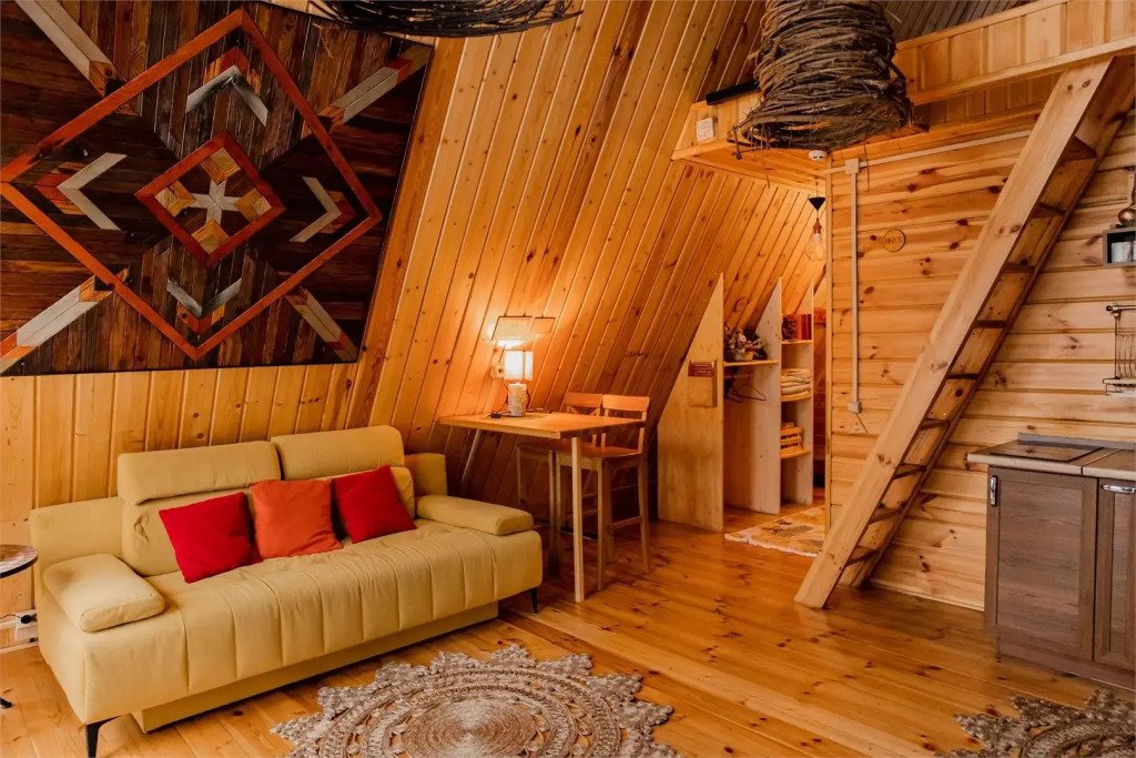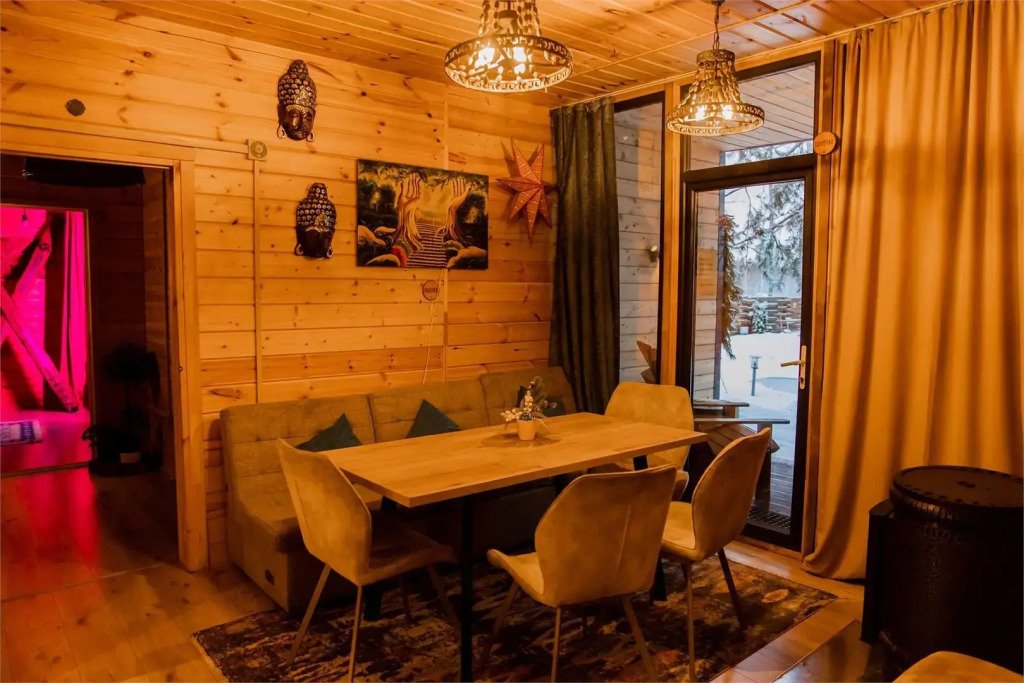 Глэмпинг включает в себя приватные пространства с домами вместимостью от 2 до 11 человек. Всего здесь 9 банных чанов, 5 оборудованных зон для посиделок у костра, юрта, 4 бани и пруд.