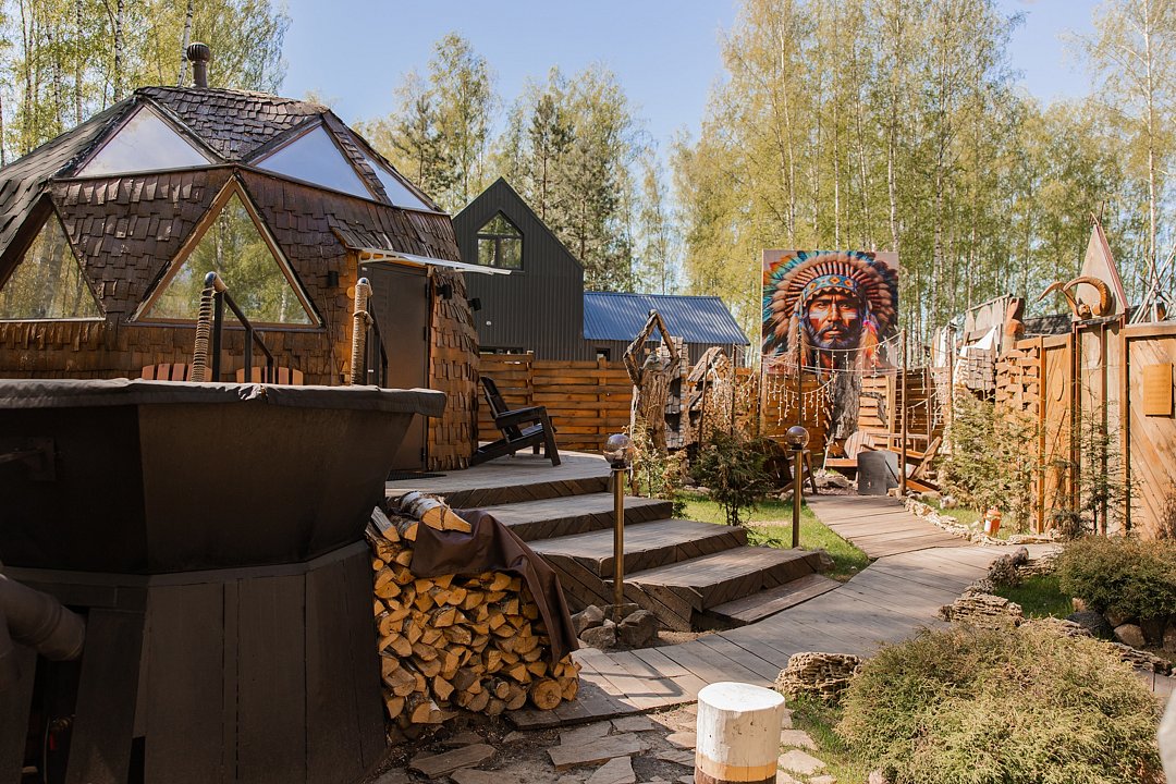 Территории каждого дома обособлены забором, чтобы гости могли наслаждаться уединением. В то же время все локации «Горьковского чана» объединены общей концепцией — дизайнерским интерьером в стиле народов Северной и Южной Америки, уютом и гармонией с природой.
