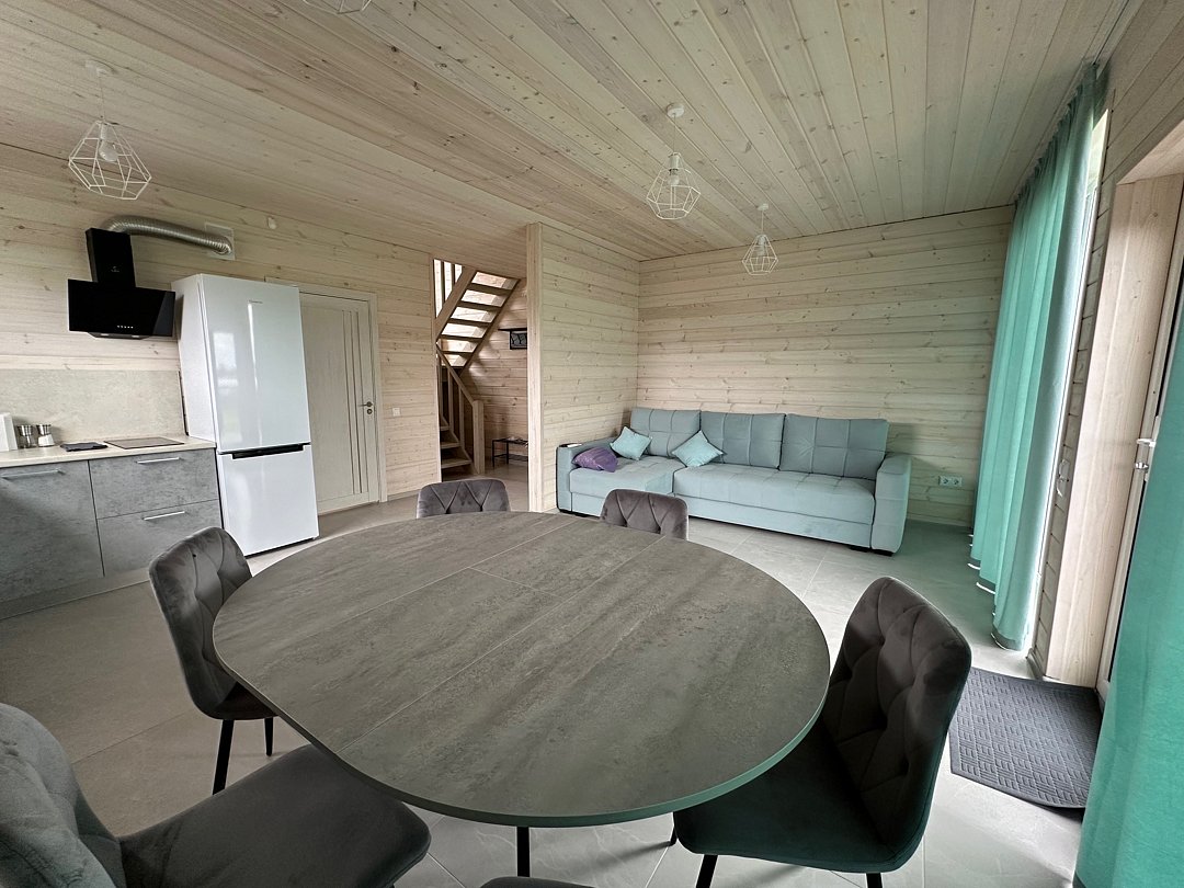 Максимальная вместимость коттеджа 8 человек. Коттедж полностью оборудован кухонными принадлежностями, а так же техникой (холодильник, чайник, электроплита, посудомочная машина, микроволновая печь.