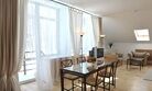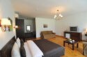 Макияжный стол, стул, диван, два кресла, журнальный столик, шкаф, кондиционер, телевизор, телефон, мини-бар, электрический чайник, кровать, прикроватные тумбочки, балкон.