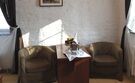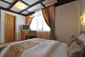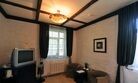 Журнальный столик, два кресла, телевизор, мини-бар, электрический чайник, телефон, кровать, прикроватные тумбочки.