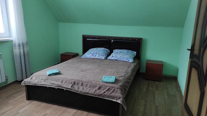Номер с отдельным входом в каменном доме для семьи с ребенком или пары взрослых гостей. Для гостей спальная комната с большой двуспальной кроватью и удобный диван. В распоряжении гостей холодильник, СВЧ печь, кулер, мангал.