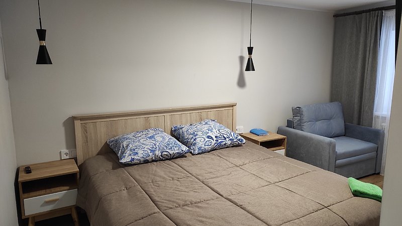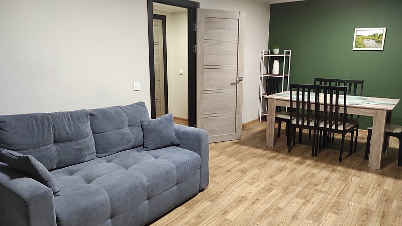 Номер с отдельным входом в каменном доме для семьи с ребенком или пары взрослых гостей . Для гостей спальная комната с большой двуспальной кроватью и удобный диван. В распоряжении гостей холодильник, СВЧ печь, кулер, мангал.