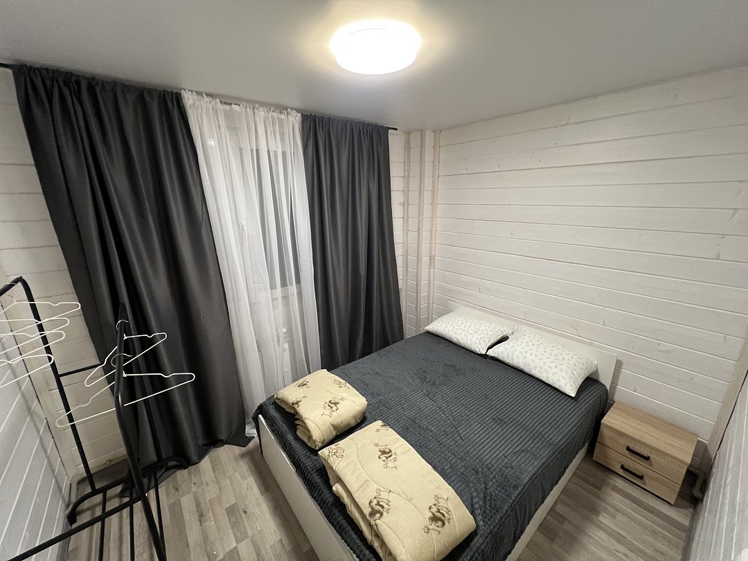 Коттедж рассчитан на размещение до десяти человек и включает три спальни, просторную гостиную-столовую и террасу с видом на озеро. Все необходимое для комфортного проживания уже готово: современная кухня с холодильником, плитой, микроволновой печью и посудой, а также телевизор, чистое постельное белье и полотенца.