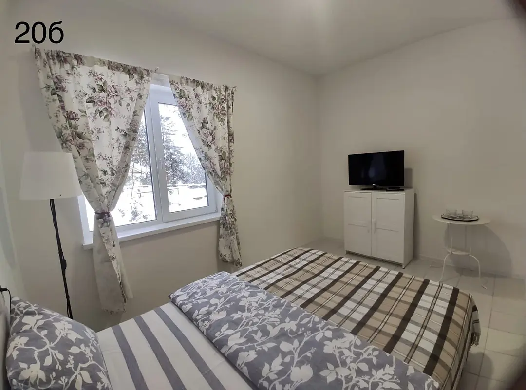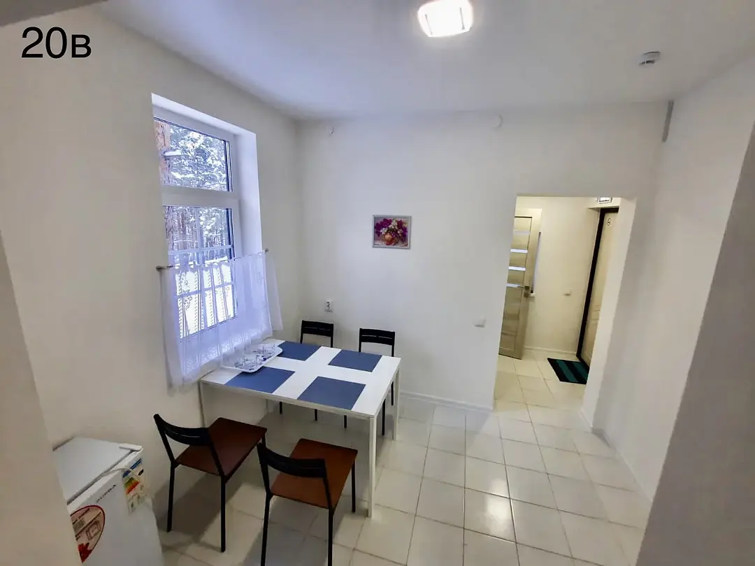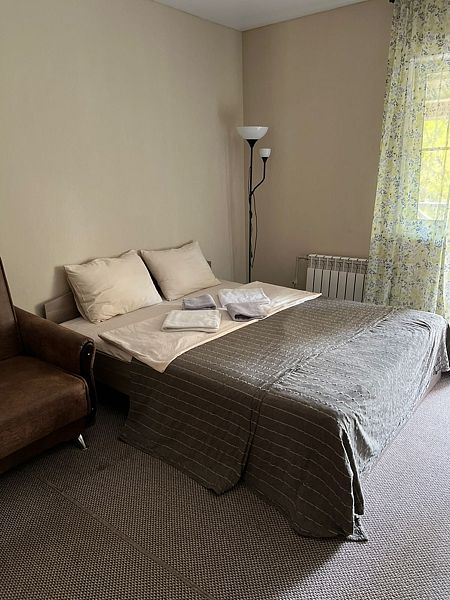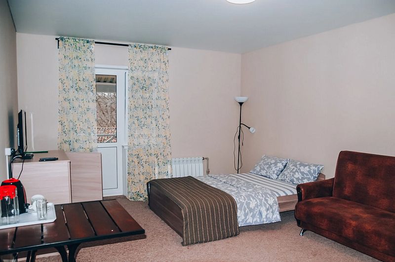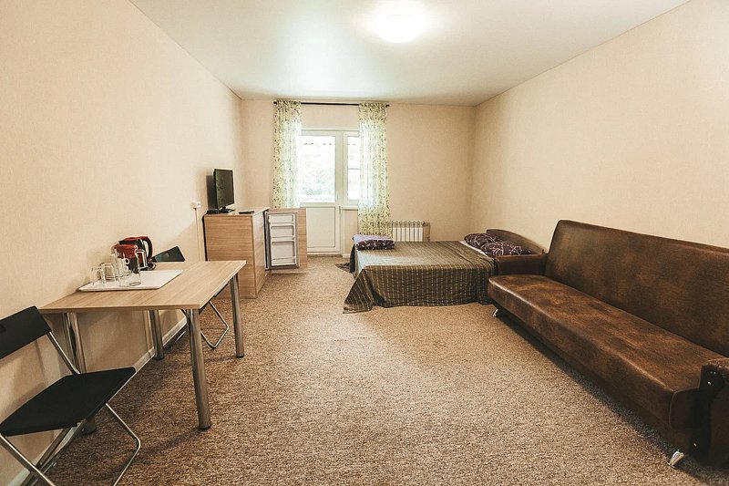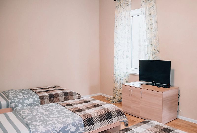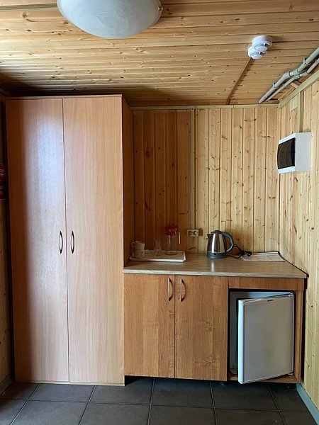 В каждом номере — своя просторная прихожая и с/у с душевой кабиной, спальная комната, обеденный столик, эл. чайник, чайная пара, холодильник (без морозильной камеры), телевизор.