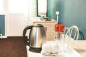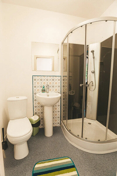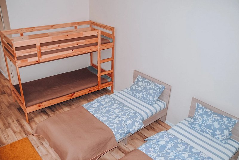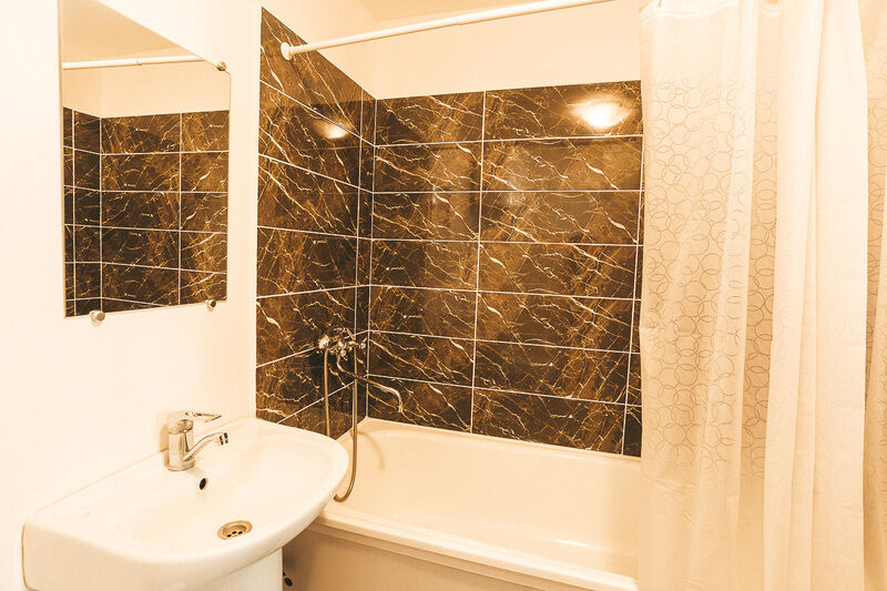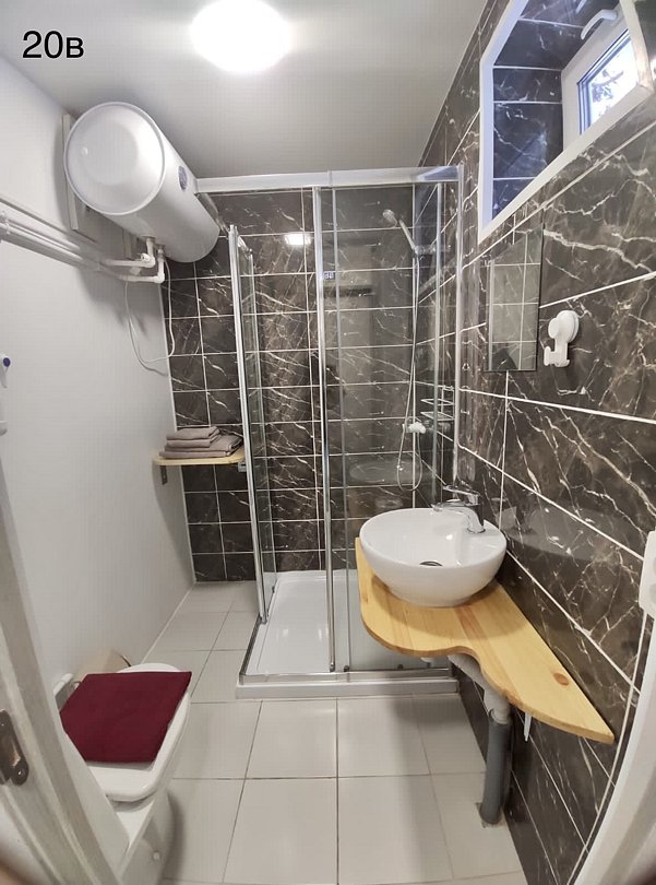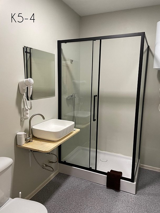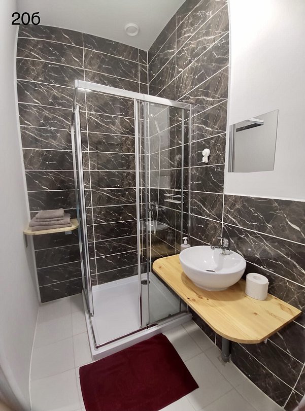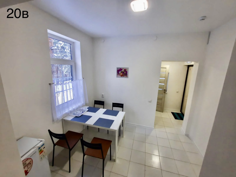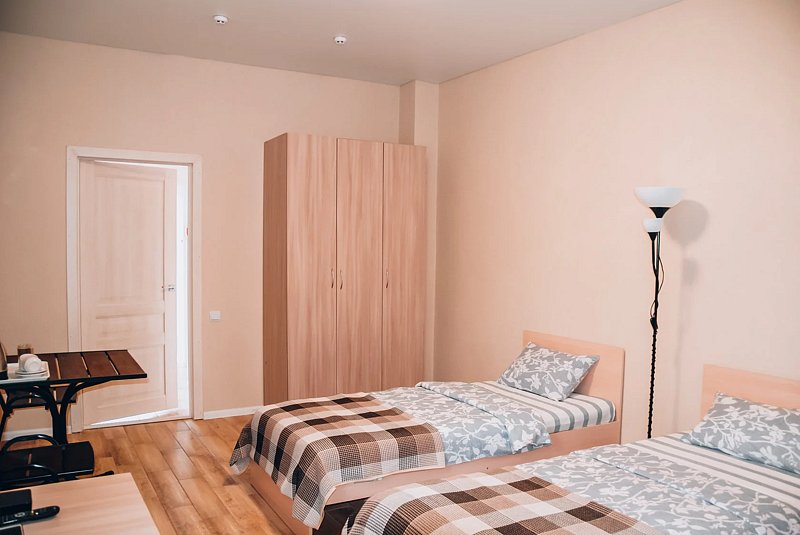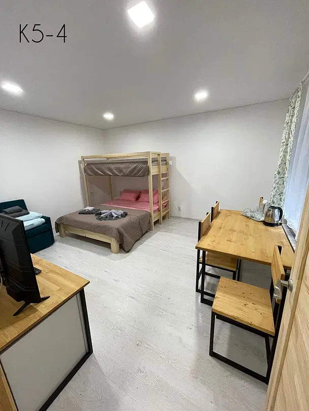 В каждом номере — своя просторная прихожая и с/у с душевой кабиной, спальная комната, обеденный столик, эл. чайник, чайная пара, холодильник (без морозильной камеры), телевизор.