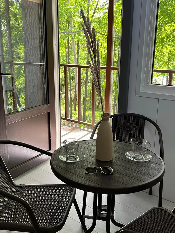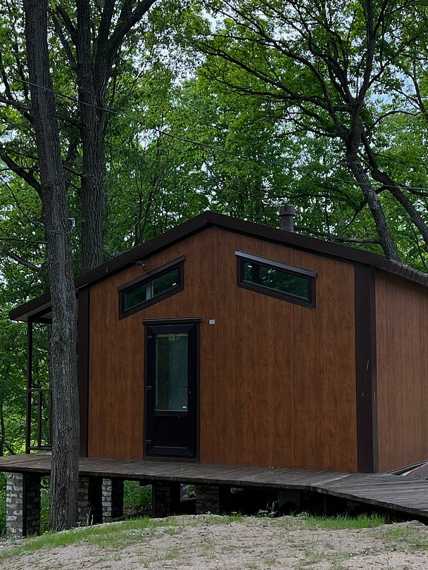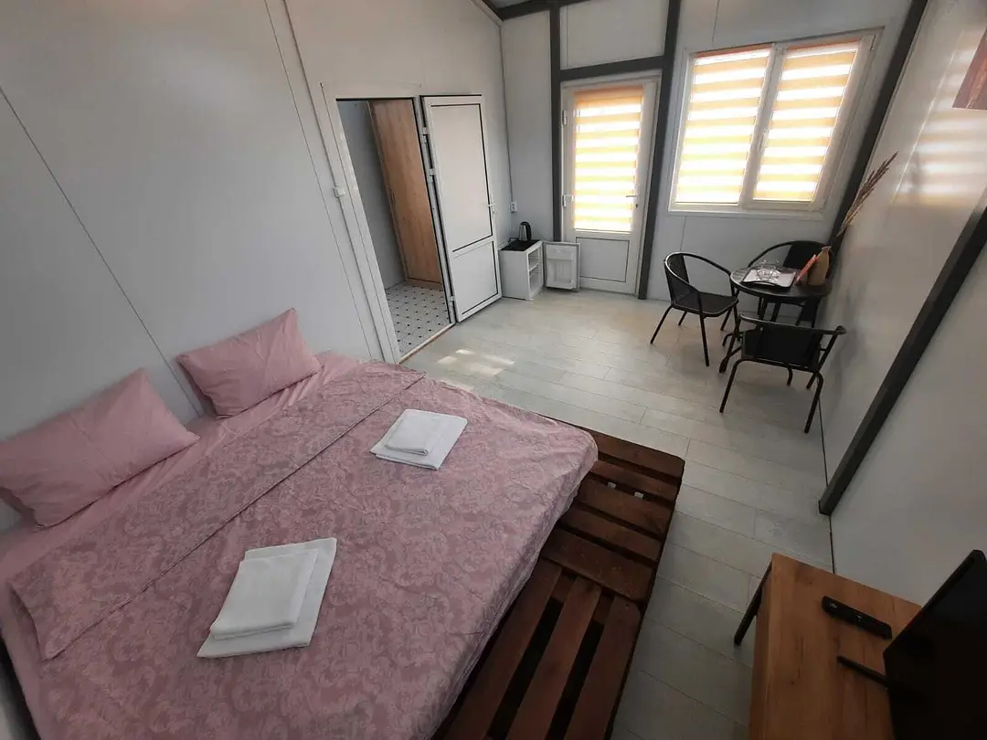 В каждом доме имеется балкон, своя просторная прихожая, с/у с душевой кабиной, спальная комната с двухспальной кроватью, обеденный столик, эл. чайник, холодильник (без морозильной камеры), чайная пара, телевизор.