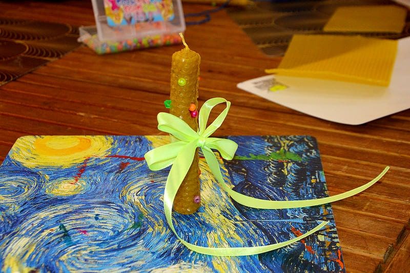 - творческий мастер-класс по изготовлению и украшению свечи из вощины под названием «Ароматный сувенир»;