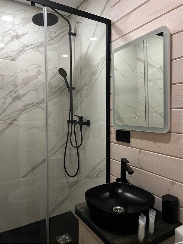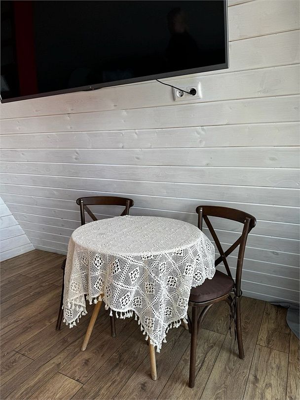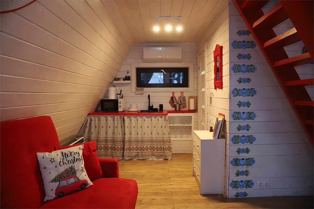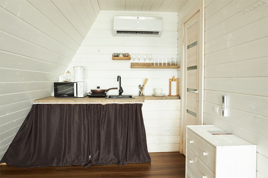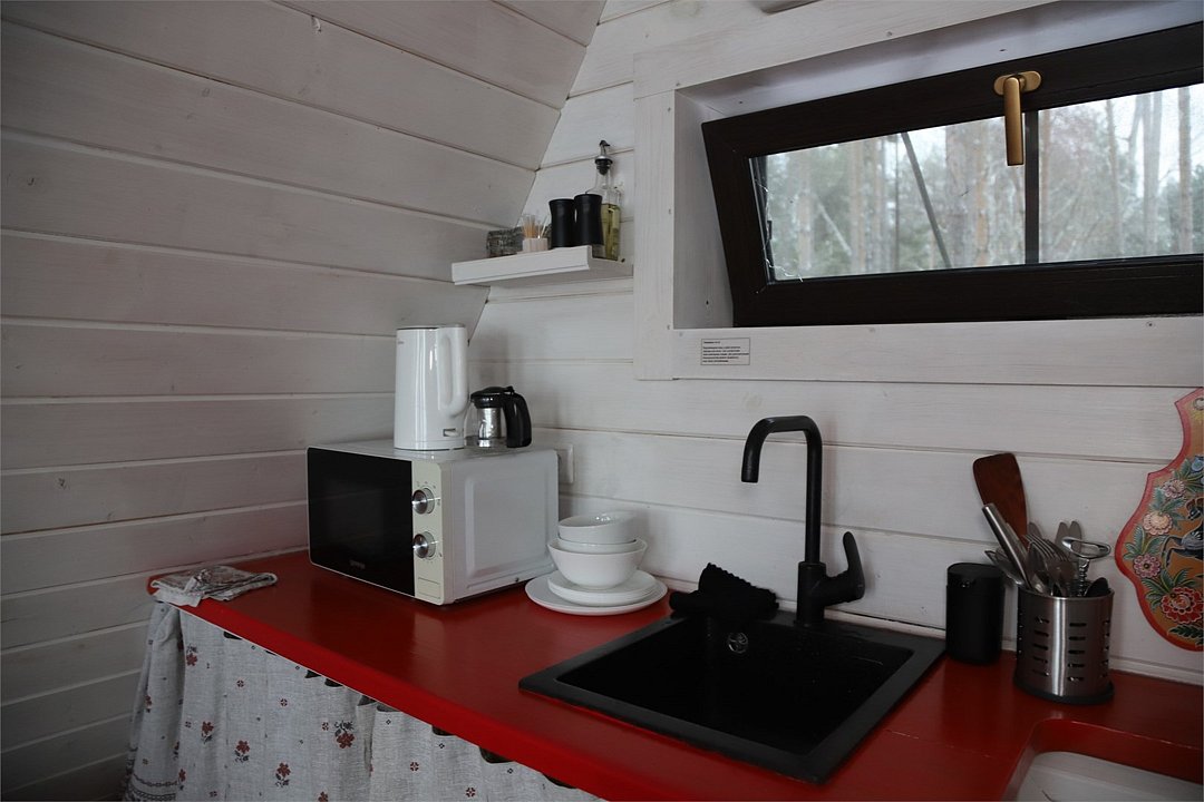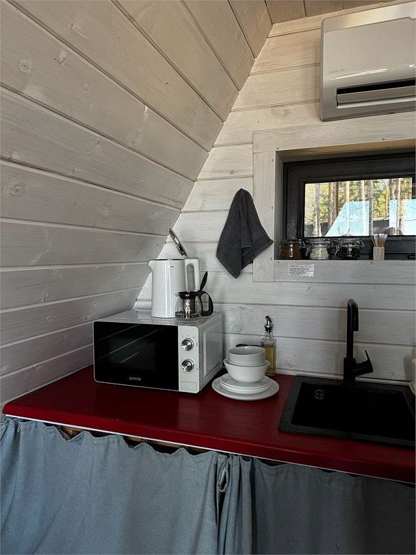 Wi-Fi, кондиционер, светильник, фен, микроволновая печь, обогреватель, душевая кабина, водонагреватель, теплый пол, банные полотенца, гигиенические средства, терраса, двуспальная кровать, стулья, набор посуды, чайник, раковина, стаканы, кухонная утварь, столовые приборы, стол, туалет, мангал, принадлежности для барбекю, панорамные окна, мини-холодильник, мини-кухня, частичный вид на море, телевизор со Smart TV, теплые полы, вид на лес, фумигатор, набор для приготовления чая и кофе, мини-бар (платно), веранда, мыло, затемняющая штора, окна от пола до потолка, прачечная (за дополнительную плату), еда на вынос (за дополнительную плату), дождевой и ручной душ, можно с питомцами, миска, пакетик для выгулаВ домике