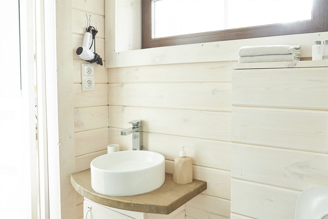 Wi-Fi, кондиционер, фен, плита для приготовления пищи, микроволновая печь, обогреватель, душевая кабина, теплый пол, банные полотенца, гигиенические средства, терраса, двуспальная кровать, стулья, набор посуды, вид на море, стол, мини-холодильник, мини-кухня, телевизор со Smart TV, теплые полы, набор для приготовления чая и кофе, уличный стол и стулья из тикового дерева, затемняющая штора, окна от пола до потолка, можно с питомцами, миска, пакетик для выгулаВ домике