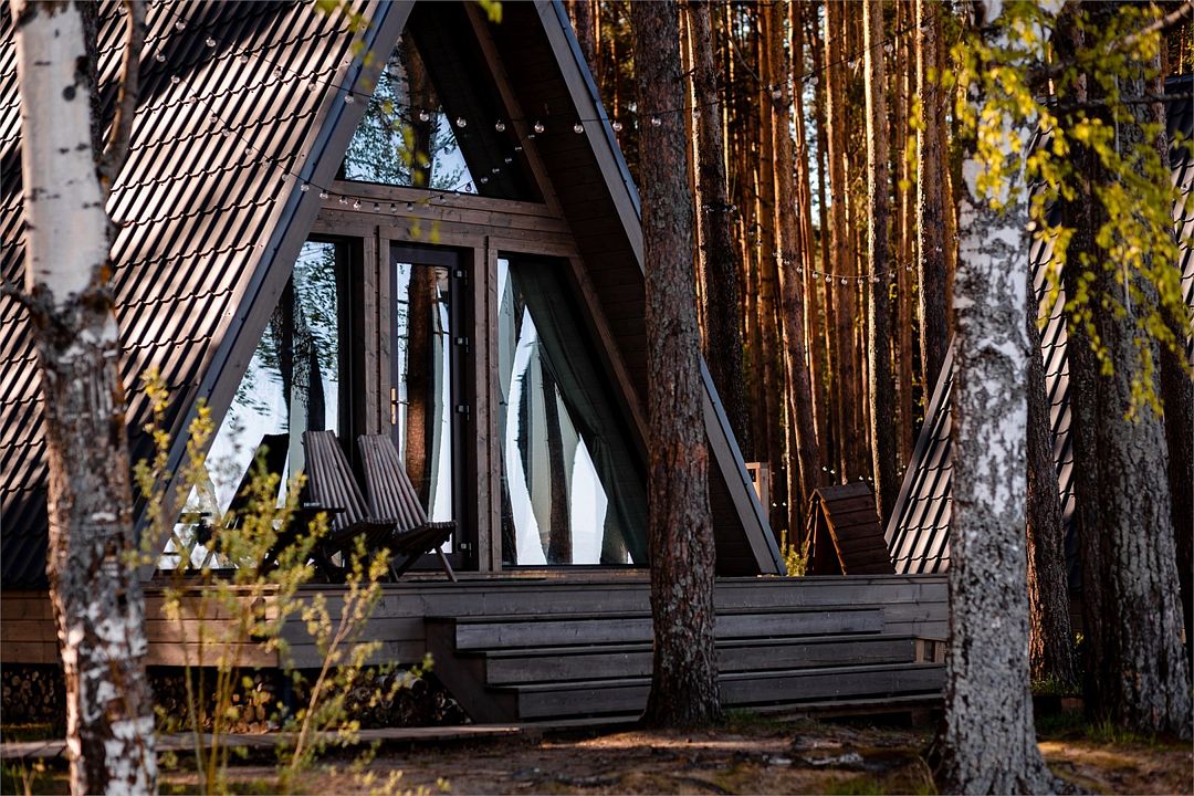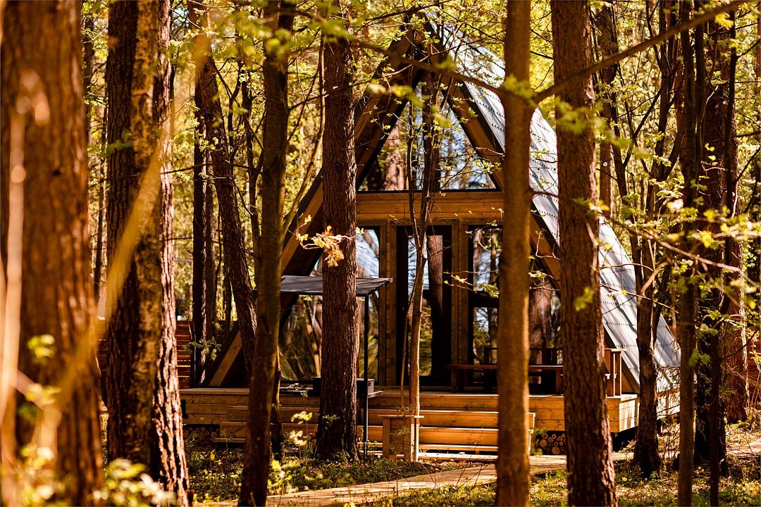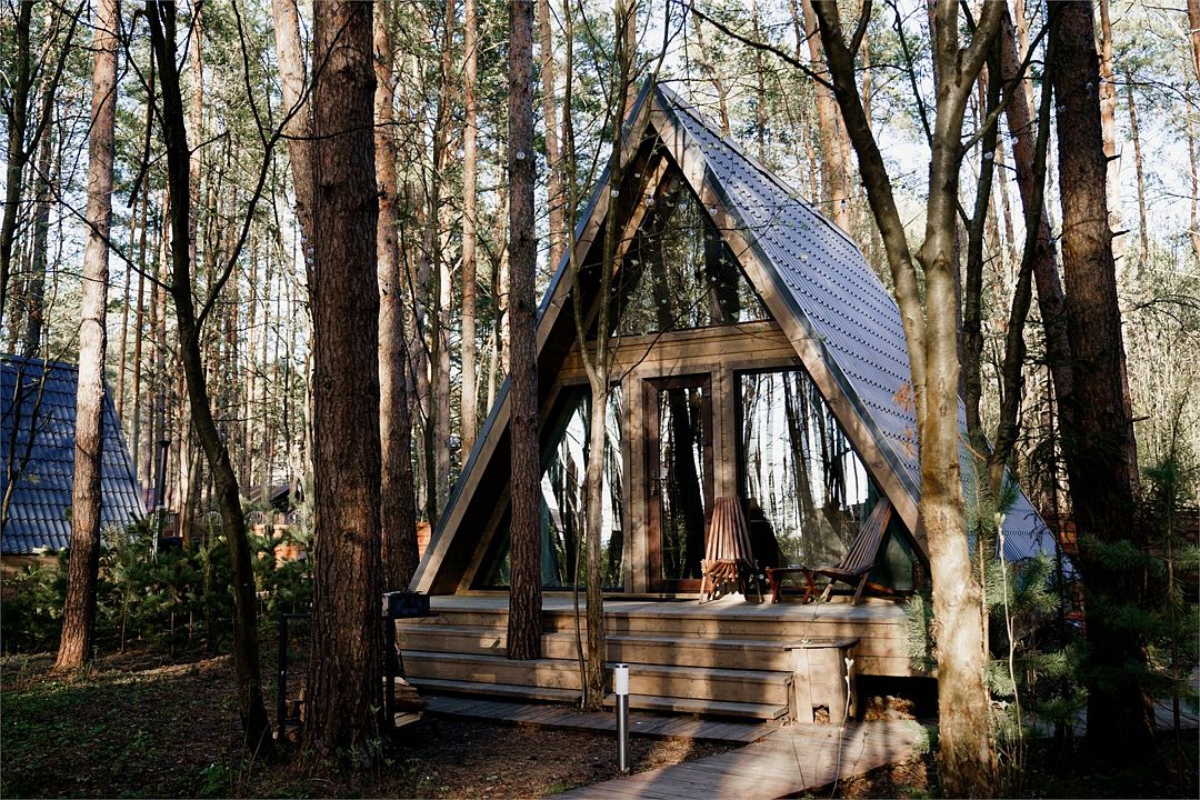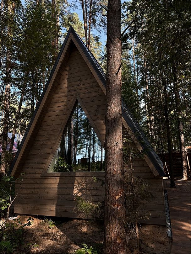 А-фрейм в сосновом лесу