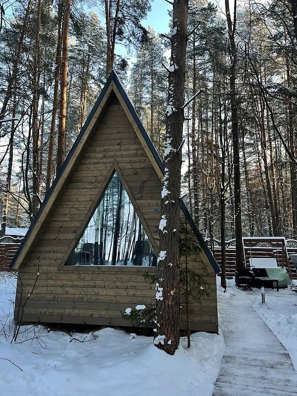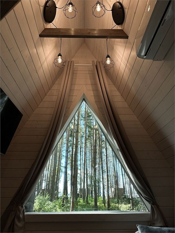СТИЛИЗОВАННЫЙ A-FRAME Наши дома A-frame в особой стлизации объединяют в себе комфорт гостиничного номера с возможностью отдыха на природе. Здесь вы попадаете в свой собственный особый мир, уютный и ни на что не похожий. Домик в тени деревьев рассчитан на 2х-4х местное размещение. Из панорамных окон открывается вид на сосновый лес и закат над Горьковским водохранилищем. Около каждого домика есть веранда с зоной отдыха и мангалом. Наши дома полностью экологичные - для постройки использовались натуральные материалы. Этот домик подойдет не только для отдыха со второй половинкой, но также и для уикенда с семьей. (ЗАЕЗД с 14:00 ВЫЕЗД до 12:00)Услуги и удобства