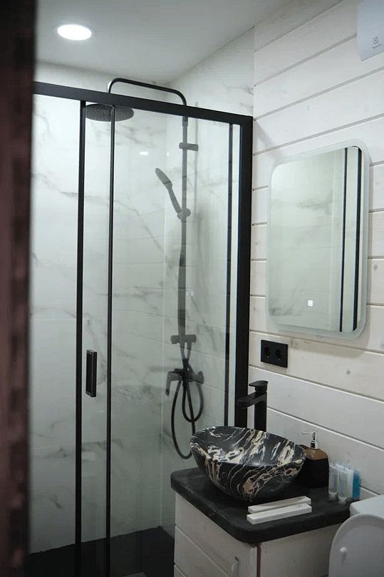 Wi-Fi, кондиционер, фен, плита для приготовления пищи, микроволновая печь, обогреватель, душевая кабина, санузел, водонагреватель, банные полотенца, косметические средства, терраса, двуспальная кровать, стулья, обеденный стол, зеркало, комод, набор посуды, чайник, раковина, отдельный вход в номер, душ, вид на море, кухонная посуда, кухонная утварь, столовые приборы, туалетные средства, туалет, мангал, панорамные окна, раскладной диван, мини-холодильник, мини-кухня, телевизор со Smart TV, теплые полы, фумигатор, двуспальный раскладной диван-кровать, набор для приготовления чая и кофе, веранда, мыло, затемняющая штора, можно с питомцами, миска, пакетик для выгулаВ а-фрейме
