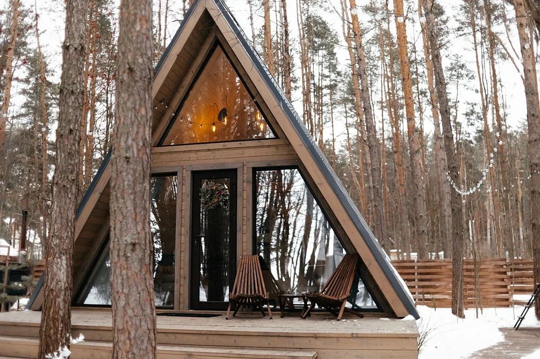35 м2 · 2-х местный а-фрейм + 2 доп. места