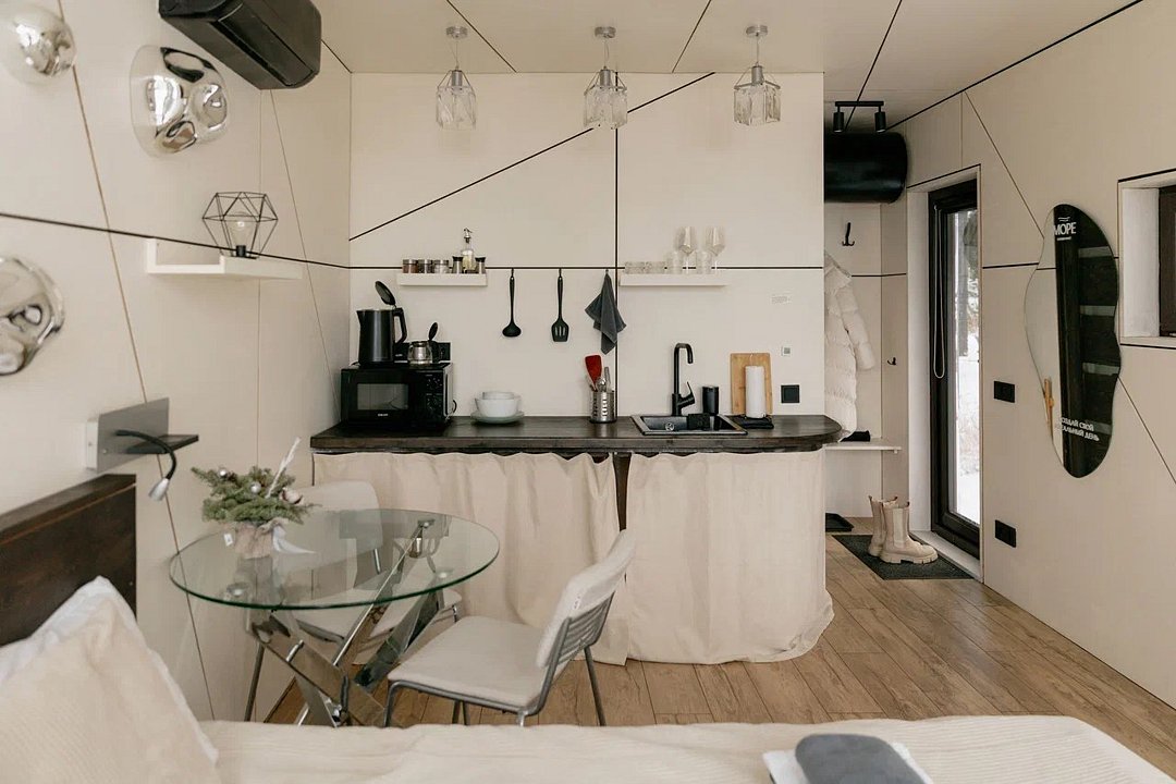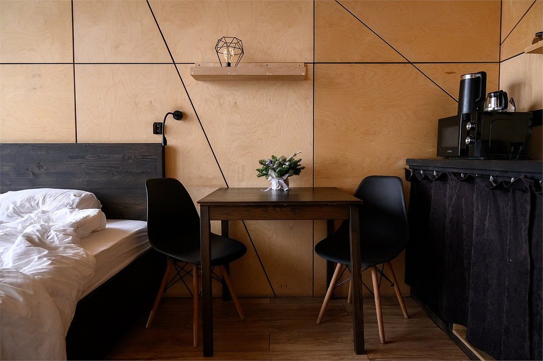 Панорамный дом с видом на Горьковское море - рай для эстетов и любителей спокойствия и уединения. Уютный, стильный, атмосферный - то, что нужно для романтичного отдыха вдвоем. Полностью остекленная стена не оставит никого равнодушным, панорама обеспечивает полное слияние с природой и позволяет наслаждаться живописными видами. Наши дома полностью экологичные, так для постройки использовались натуральные материалы. Дом рассчитан на пребывание одного или двух человек. Несмотря на свои размеры, домик очень просторный - внутри располагается кровать, санузел, кухня, столовая зона. Рядом с домом расположен индивидуальный чан, есть мангальная зона, терраса с уличной мебелью, чтобы Вы могли насладиться шикарным закатом в уютной атмосфере. Заезд в домик с 16:00, выезд до 14:00Услуги и удобства